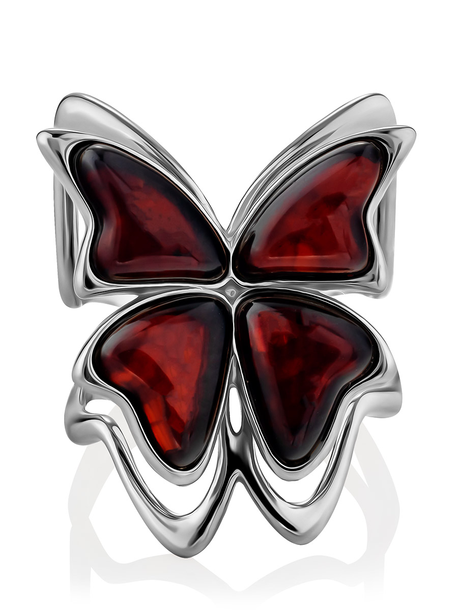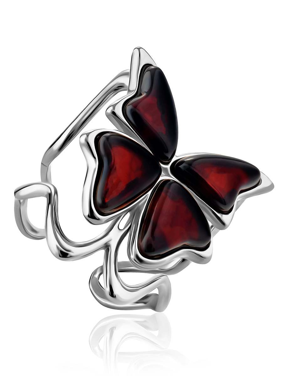 Крупное эффектное кольцо «Апрель» из натурального янтаря вишнёвого цвета