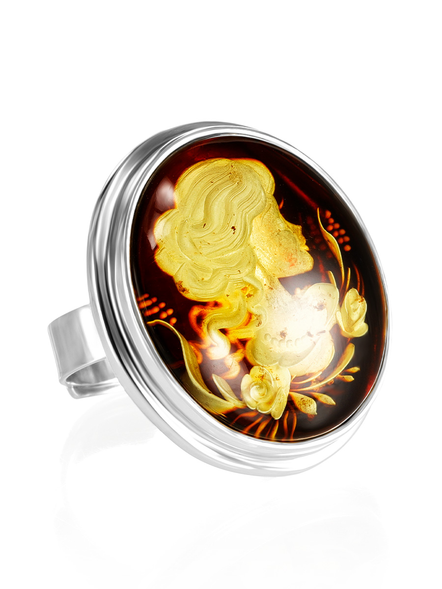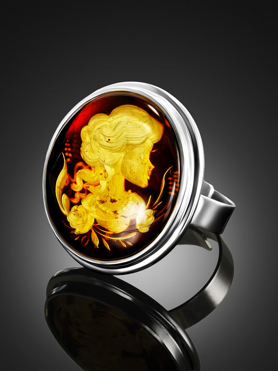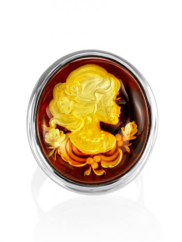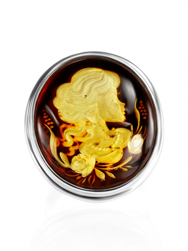 Крупное кольцо из натурального янтаря с резьбой-инталией «Элинор»