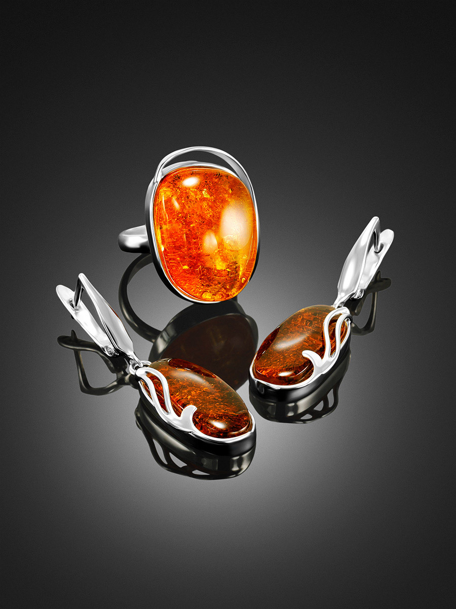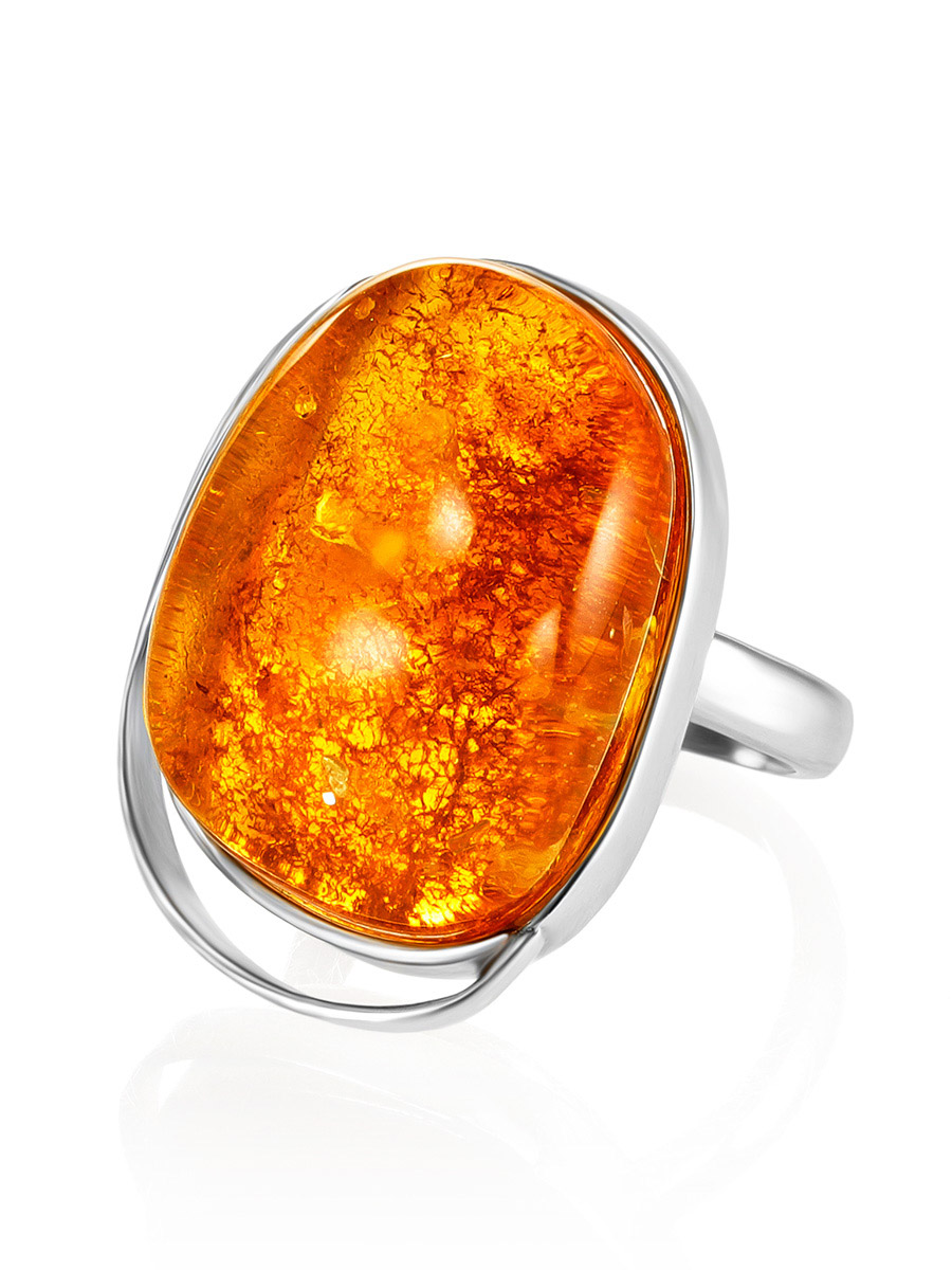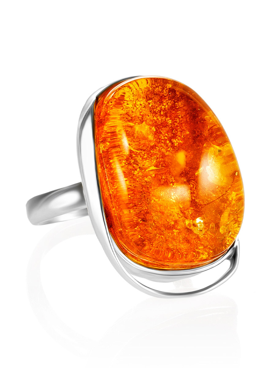 Крупное кольцо с красивым золотистым янтарём «Лагуна»