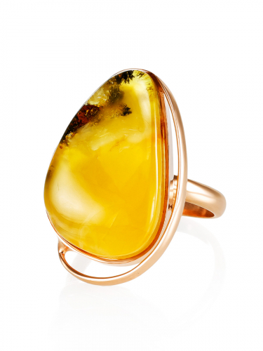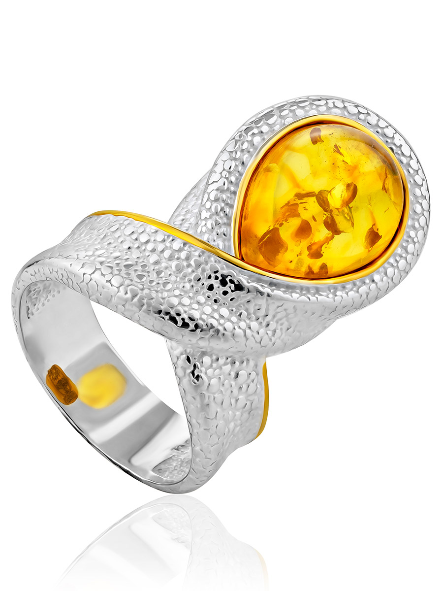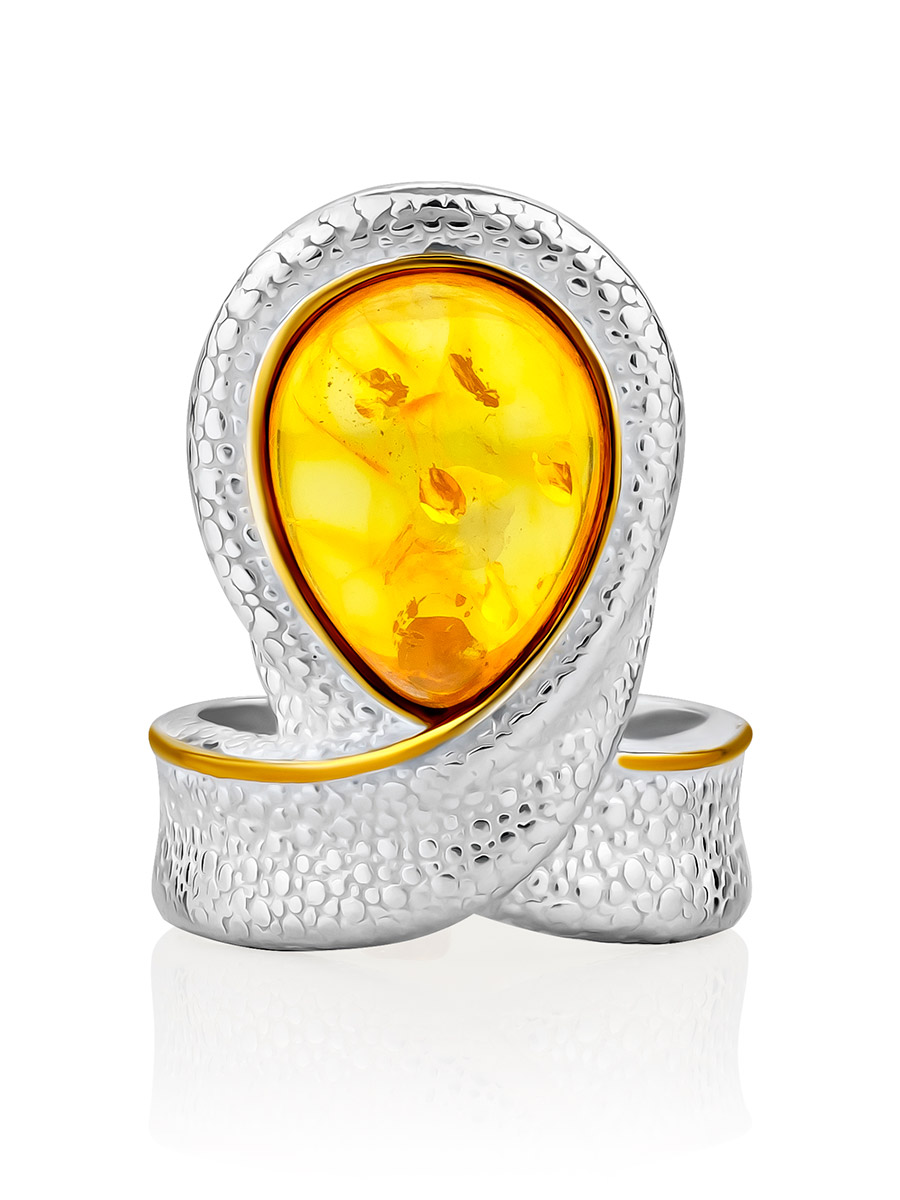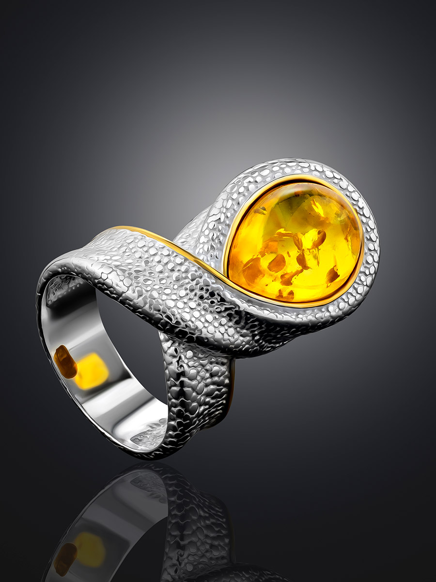 Крупное объёмное кольцо из натурального янтаря «Змейка»