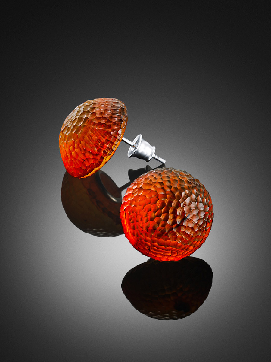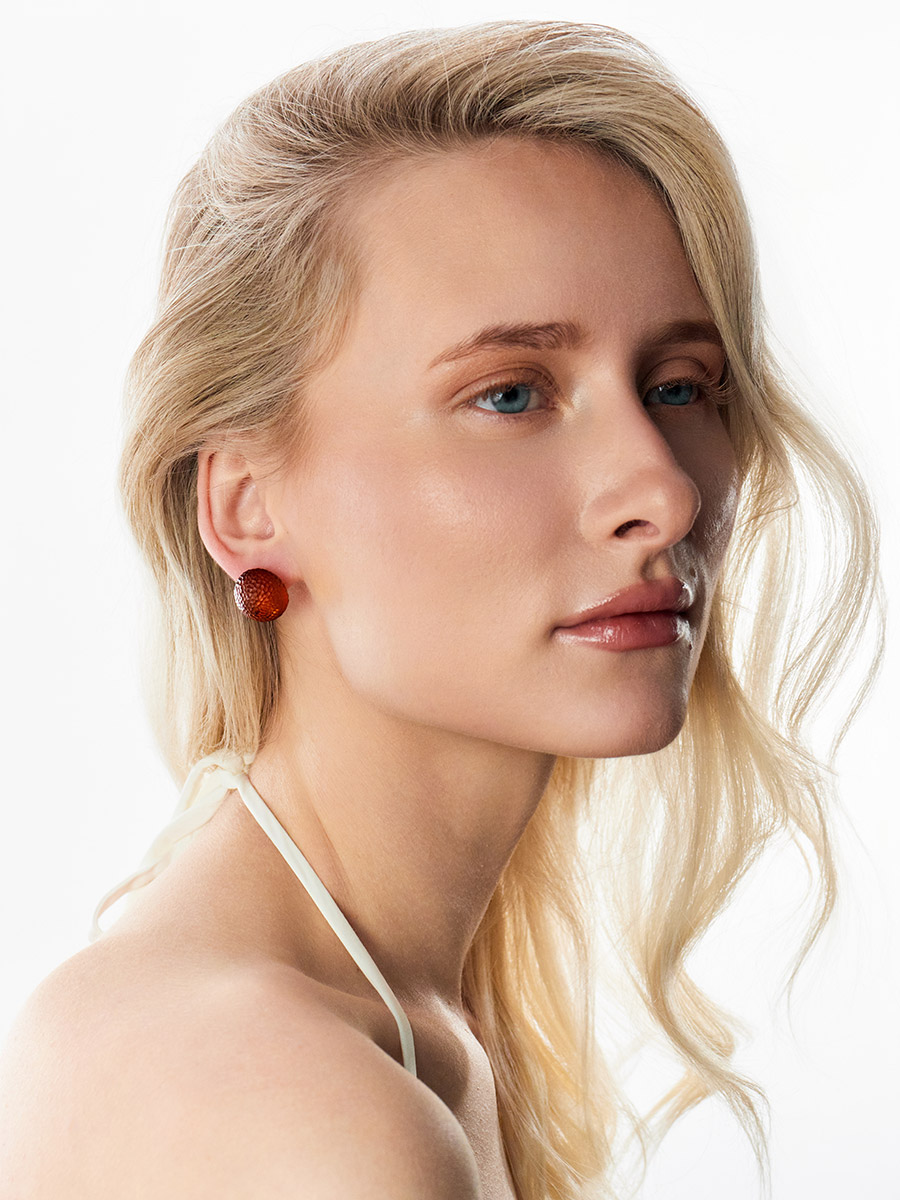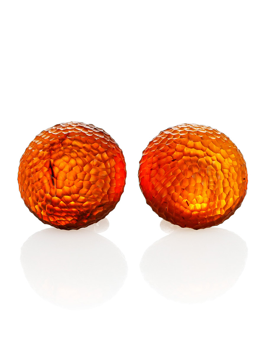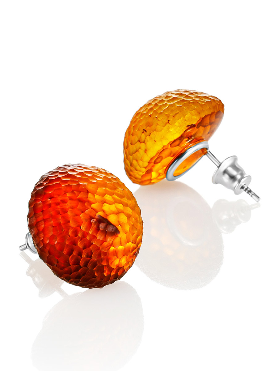 Крупные необычные серьги-гвоздики из натурального янтаря «Марс»