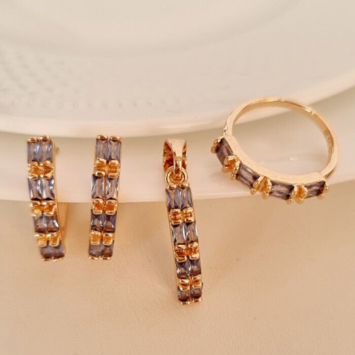 Описание Уценка! Небольшие потертости на камнях изделий, в кольце нет одного темного камня.Размер серьги: 4,6*1,5 см. Замок: английский. Вес комплекта: 17 гр.