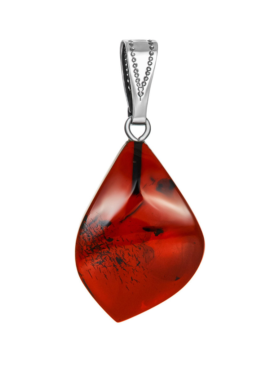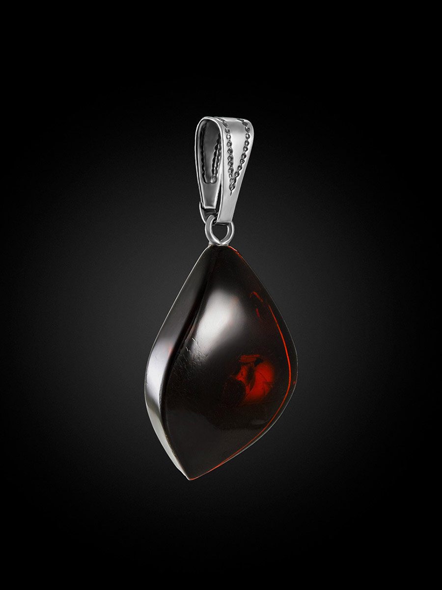 Небольшой кулон из цельного кусочка натурального балтийского янтаря вишнёвого цвета – яркое и красивое украшение, которое можно сочетать с самыми разнообразными стилями. В зависимости от того, наденете вы подвеску на длинной или короткой цепочке, кожаном шнурке, шёлковой ленте или струне, вы сможете создавать различные образы – от классических до готических. _x000D_