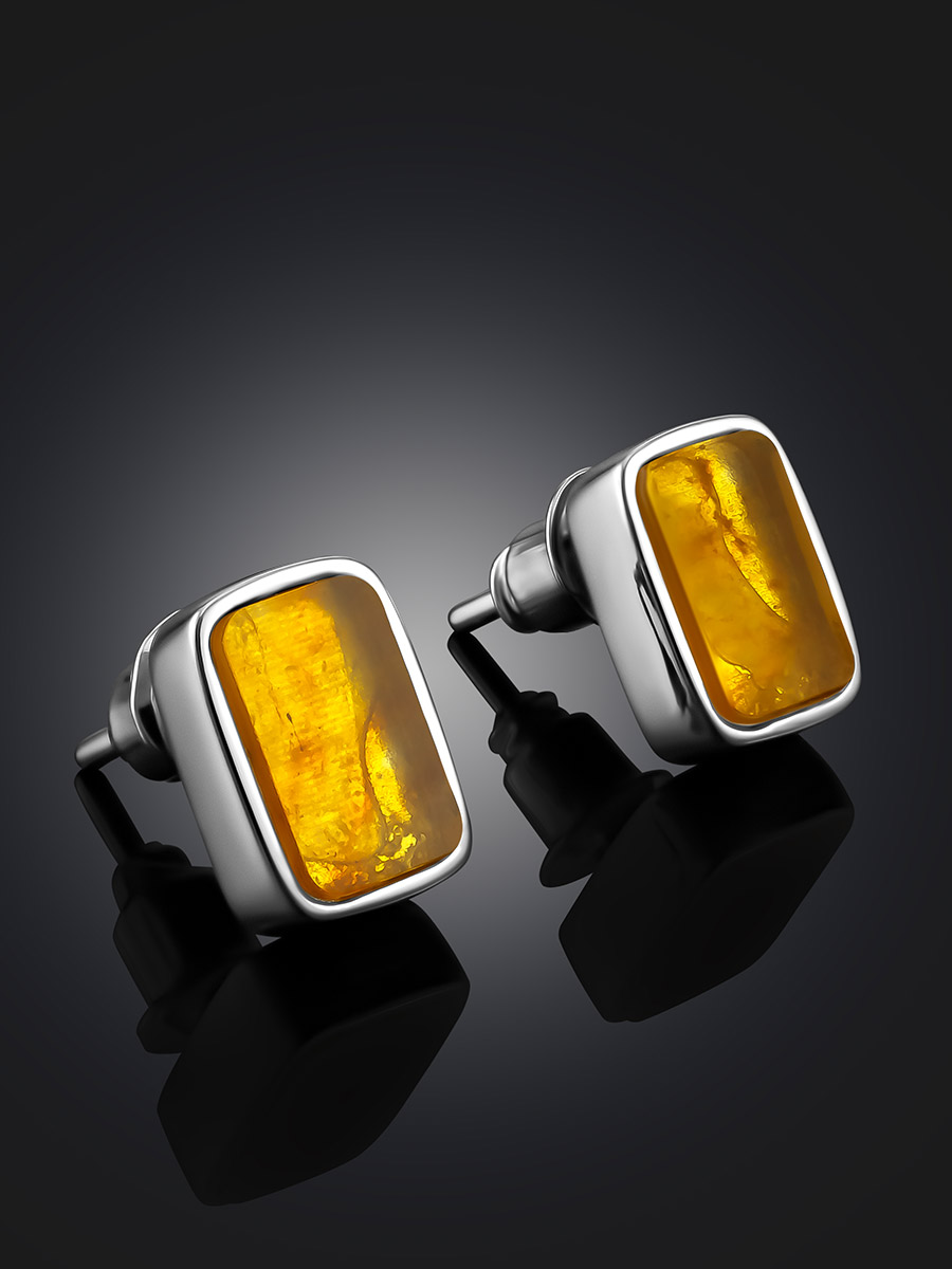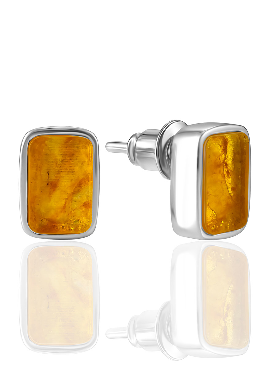 Лаконичные серьги геометрической формы London с лимонным янтарём