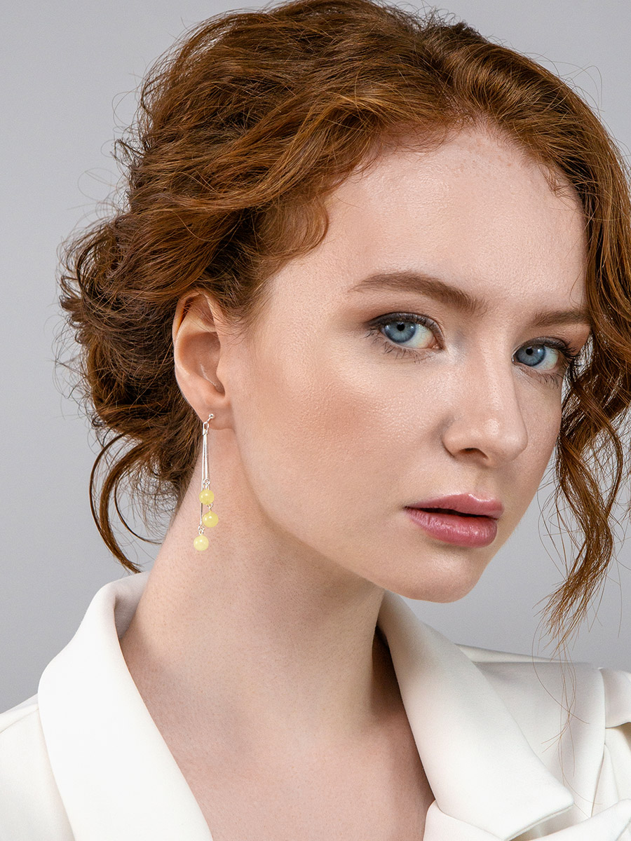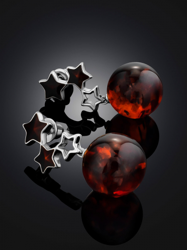 Легкие нарядные серьги из янтаря на замочках-гвоздиках «Рябина»