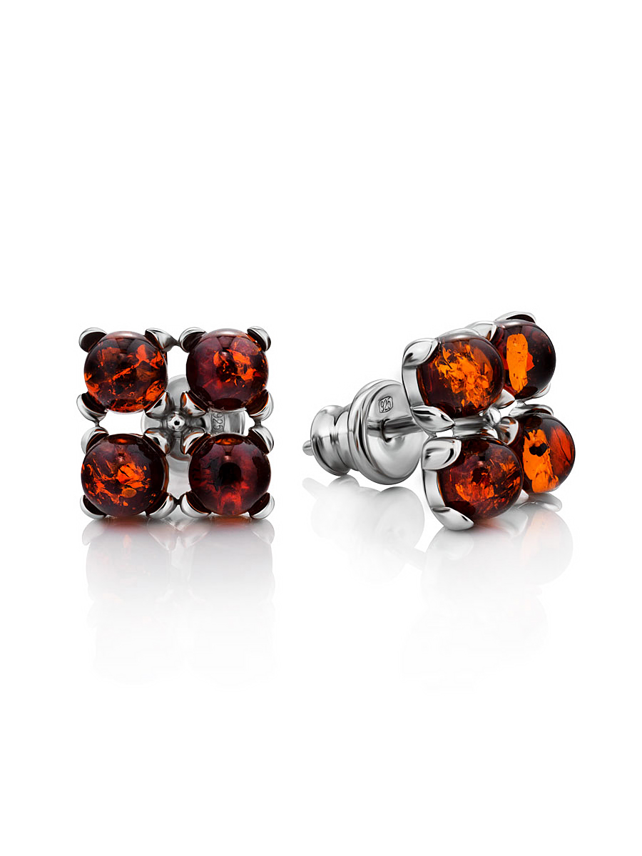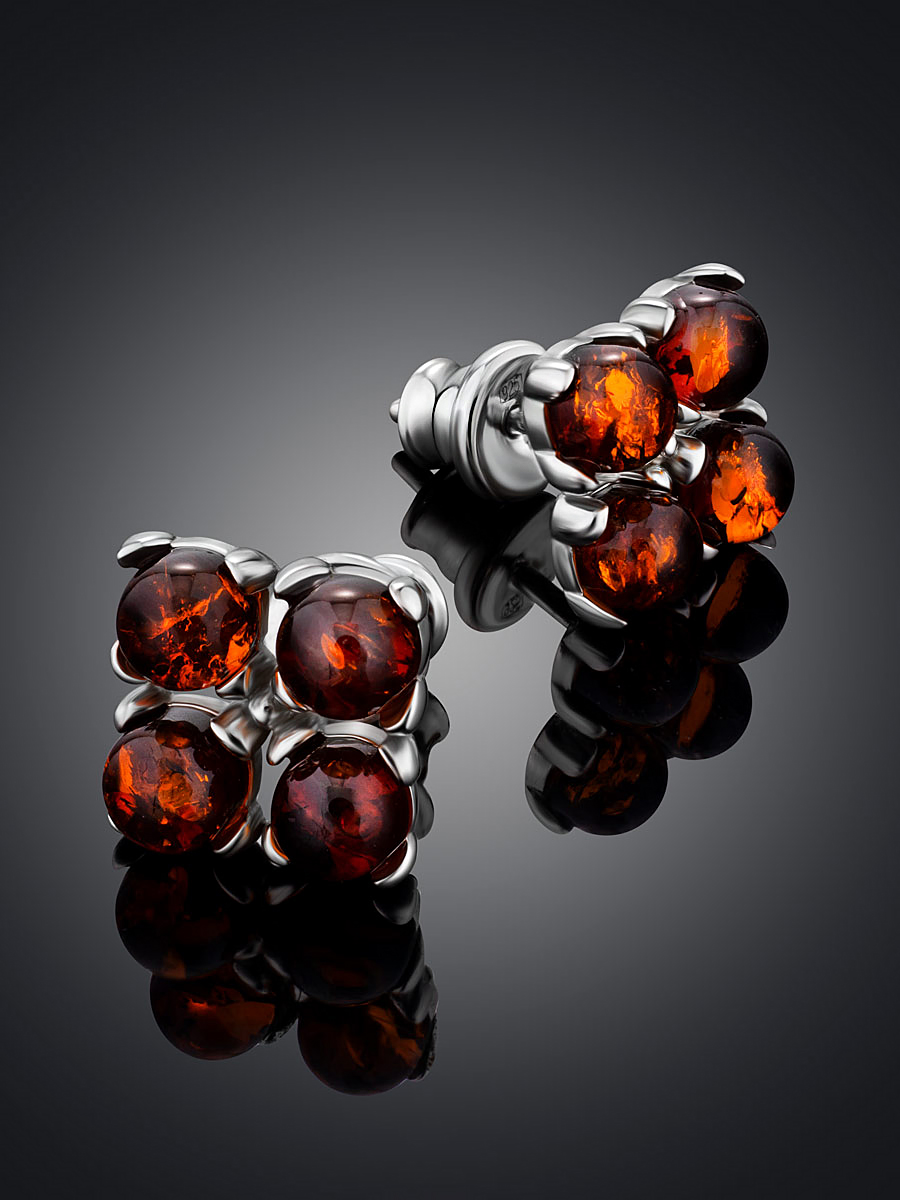 Милые серьги-гвоздики из янтаря коньячного цвета «Суприм»