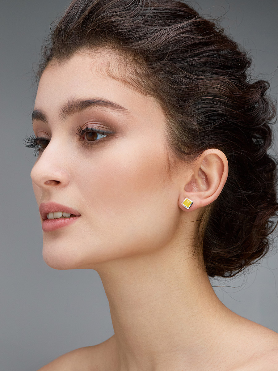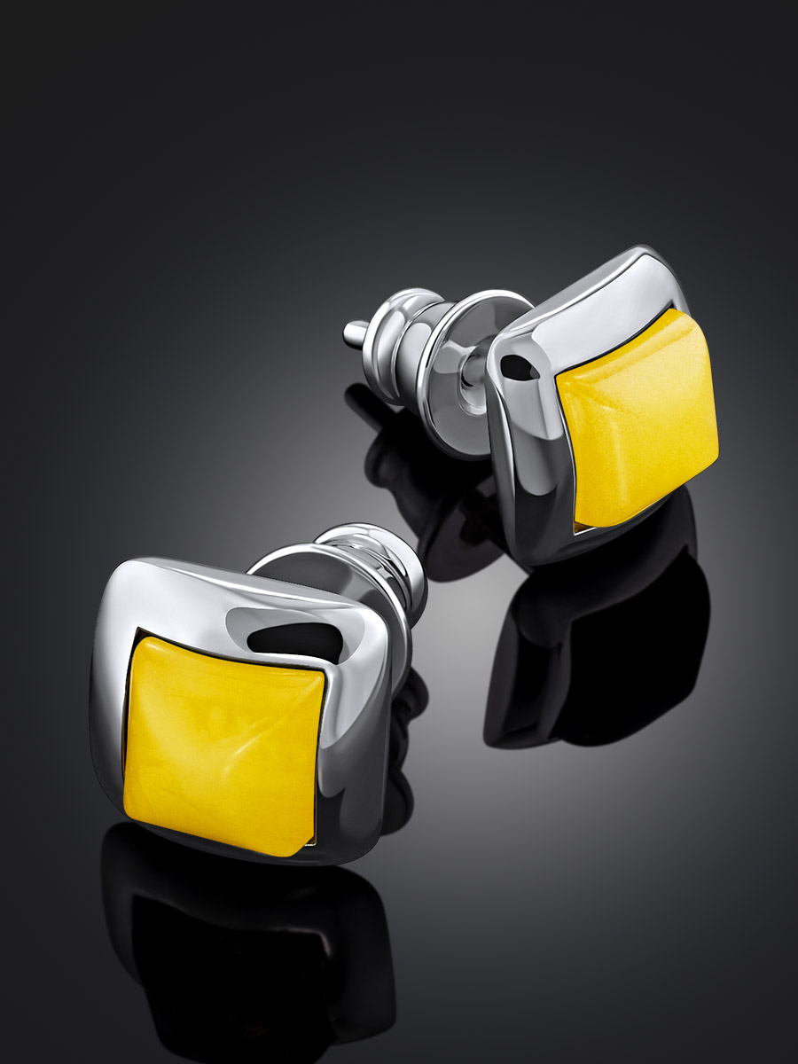 Миниатюрные серьги «Квадрат» с янтарём медового цвета