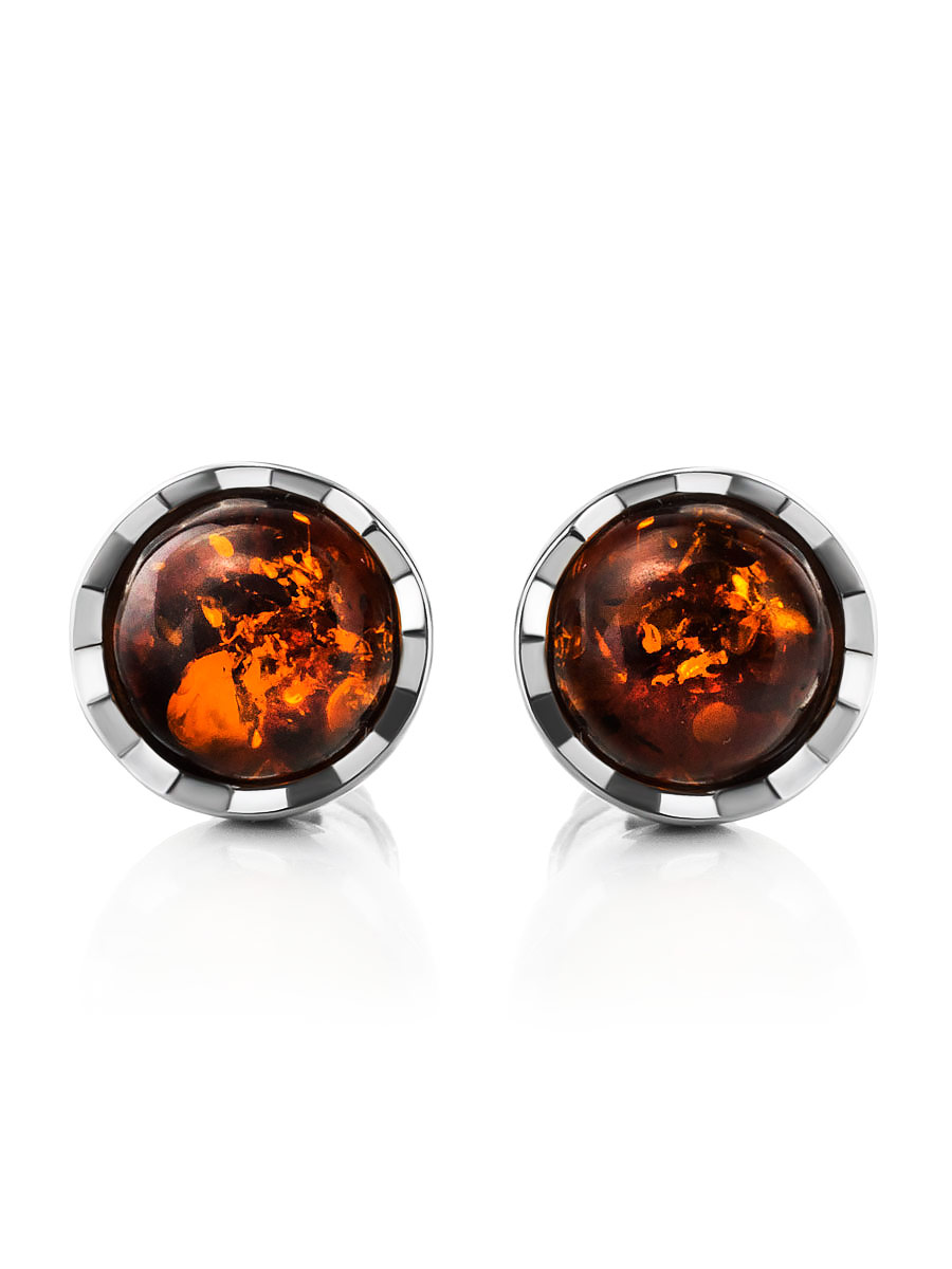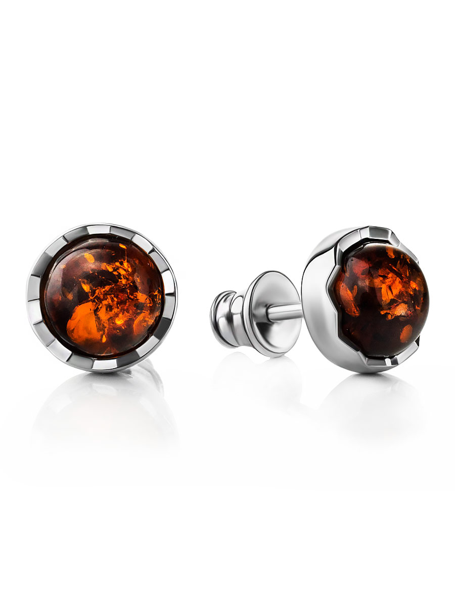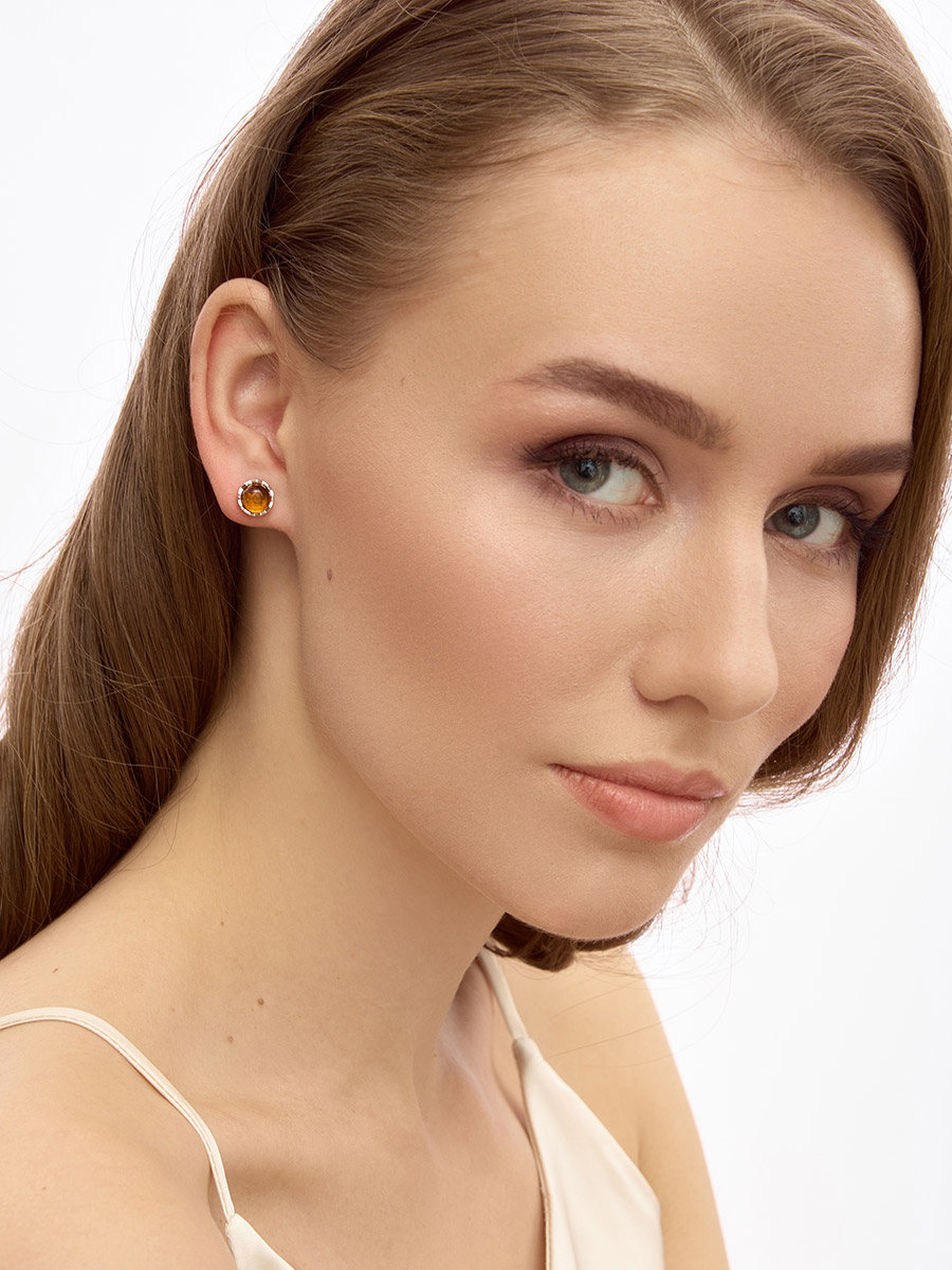 Миниатюрные серьги-пусеты с янтарём коньячного цвета «Камелот»