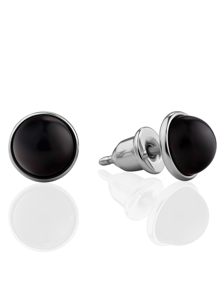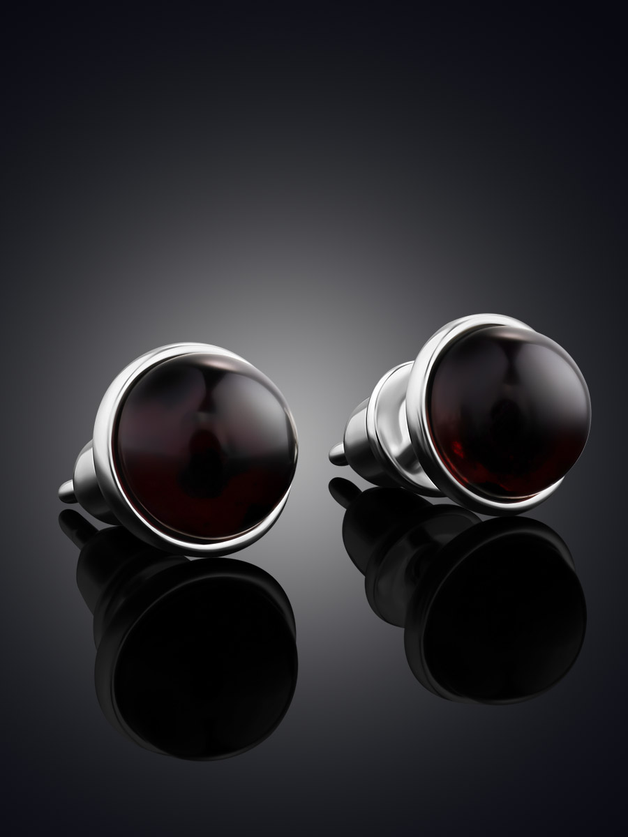 Миниатюрные серьги-пусеты со вставками из сияющего вишнёвого янтаря «Ягодки»