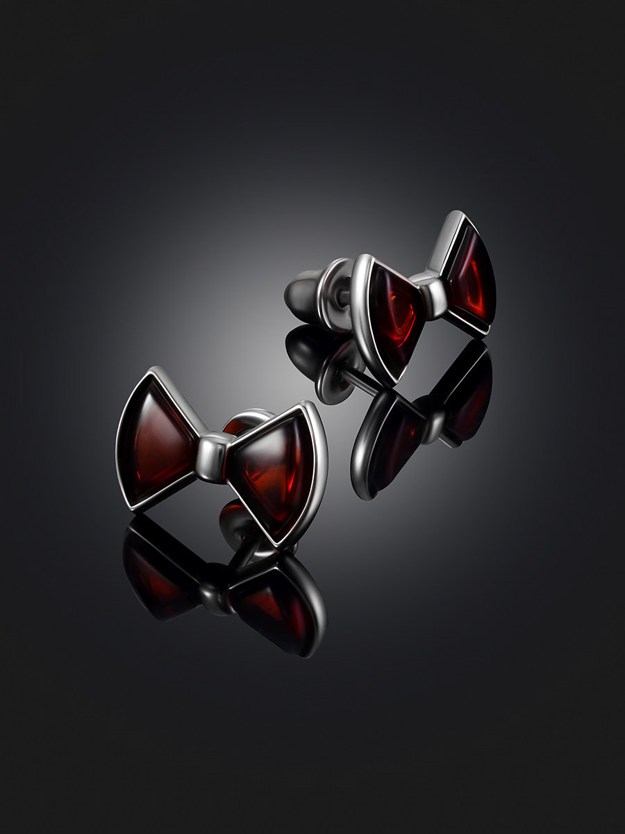 Миниатюрные серьги с вишнёвым янтарём «Бантики»