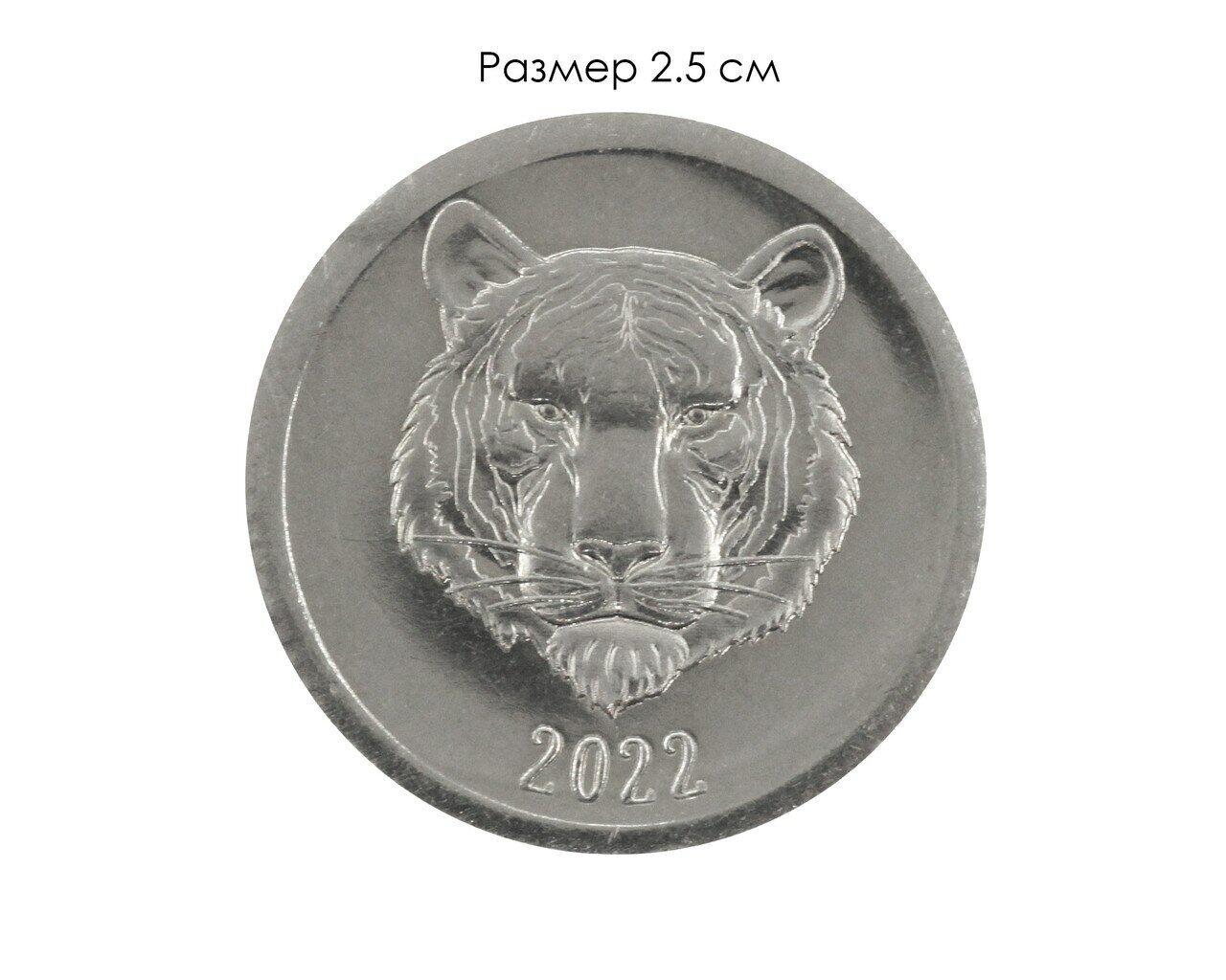 Монетки с символом наступающего года, года тигра. Монетка, приносящая удачу на весь 2022 год. Недорогой и эффектный подарок на Новый год коллегам, друзьям, знакомым, просто кому хочется подарить приятный момент, сделать что-то приятное, преподнести какой-то небольшой презент и не хочется заморачиваться выбором. Размер монетки 2.5 см