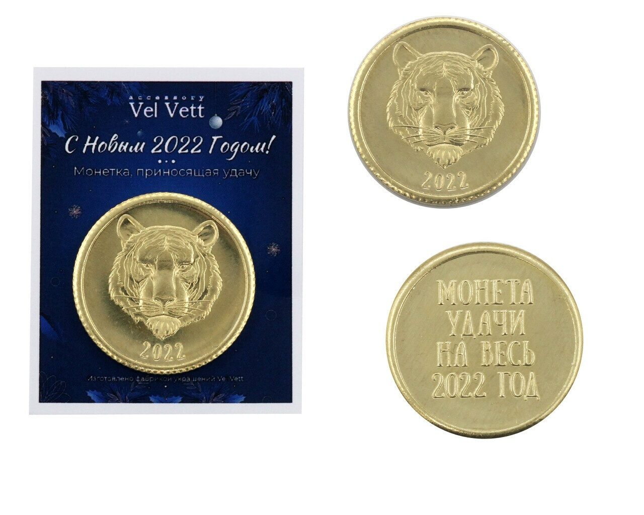Монетки с символом наступающего года, года тигра. Монетка, приносящая удачу на весь 2022 год. Недорогой и эффектный подарок на Новый год коллегам, друзьям, знакомым, просто кому хочется подарить приятный момент, сделать что-то приятное, преподнести какой-то небольшой презент и не хочется заморачиваться выбором. Размер монетки 2.5 см