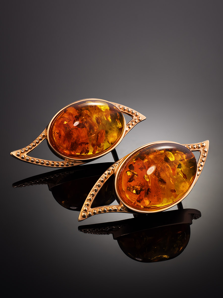 Нарядные серьги из коньячного янтаря «Прима»