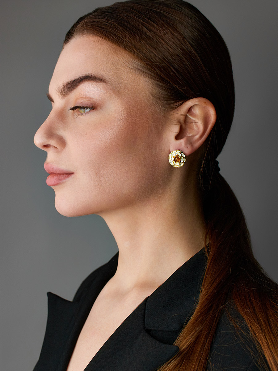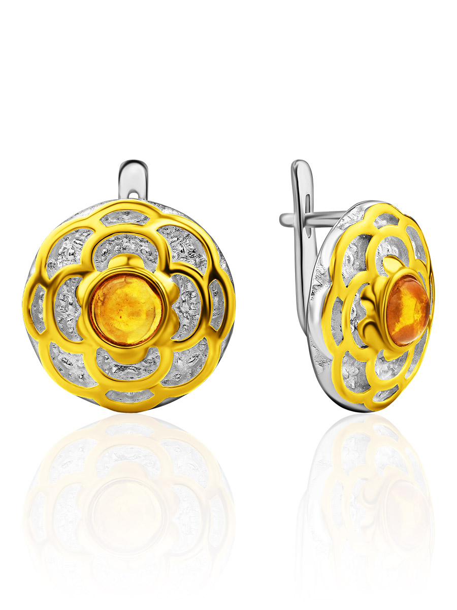 Небольшие круглые серьги из натурального янтаря «Гербера»