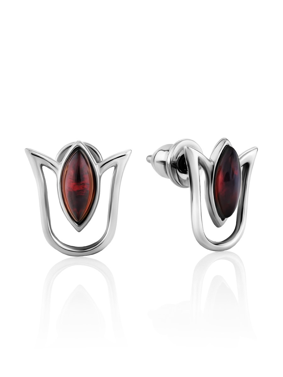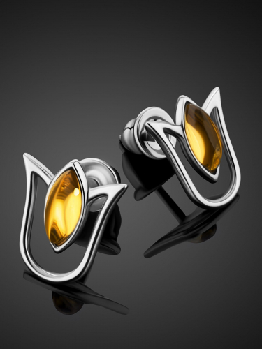 Небольшие серьги-гвоздики с янтарём коньячного цвета «Тюльпан»