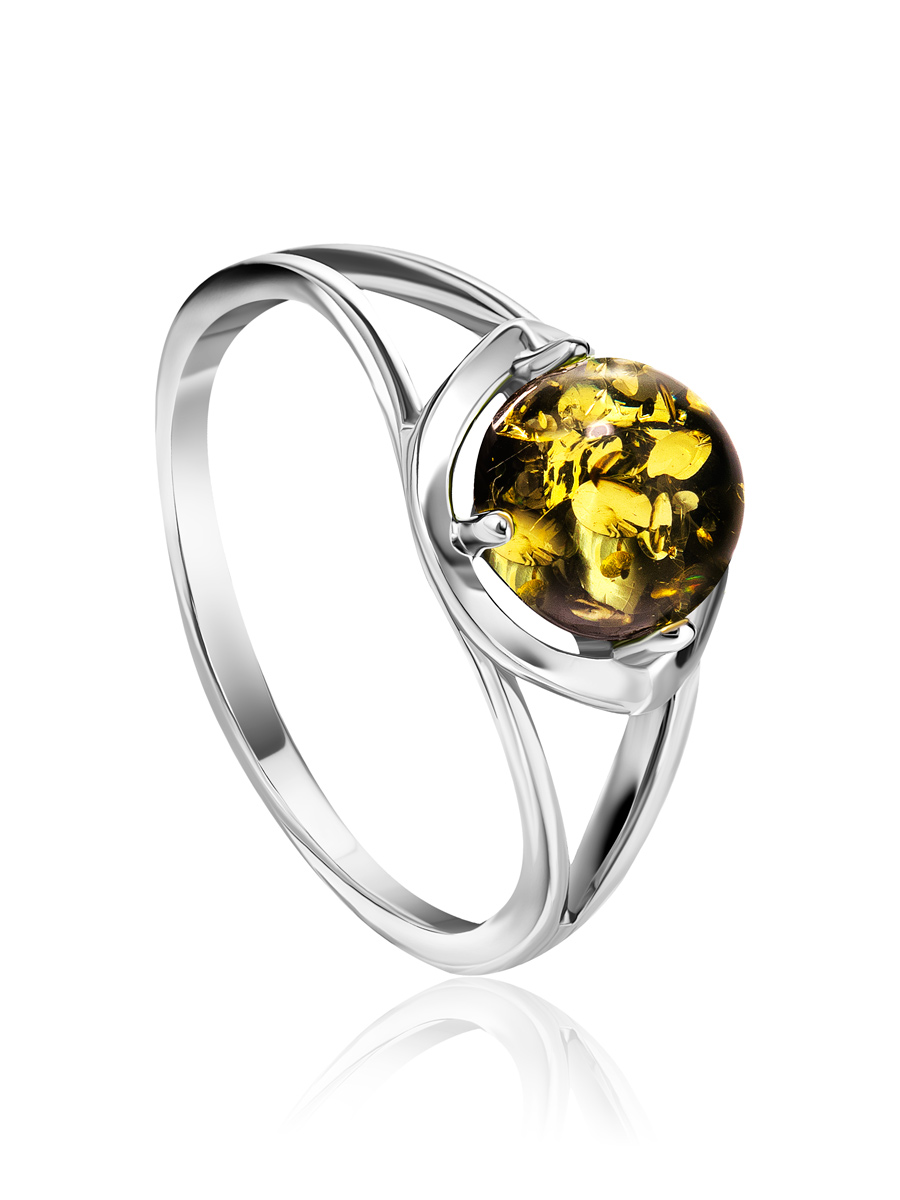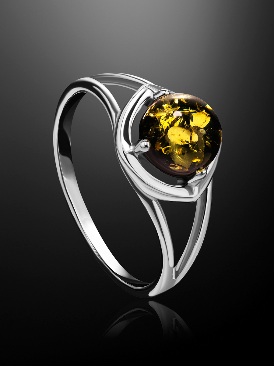 Небольшое лёгкое кольцо с натуральным зелёным янтарём «Астория»