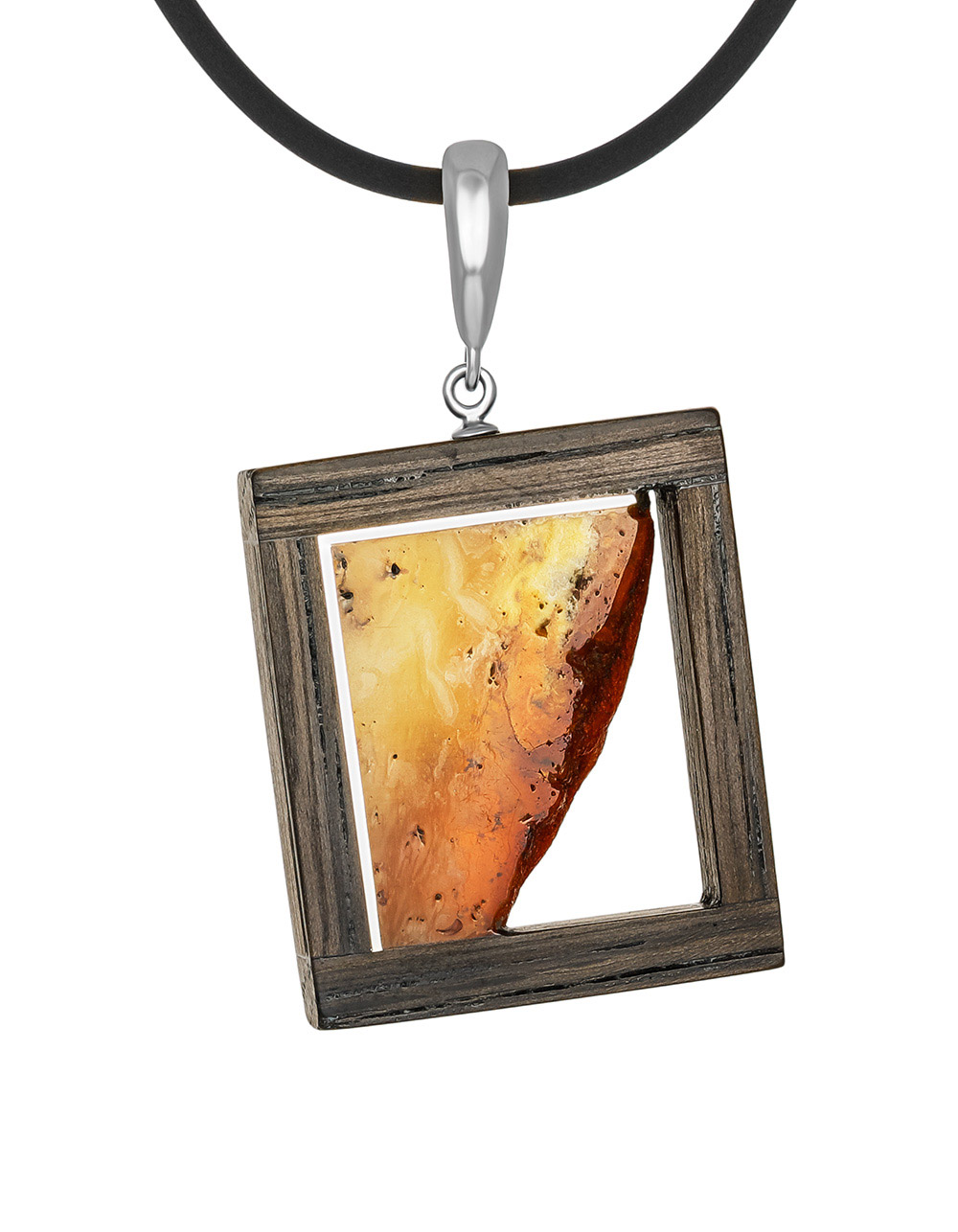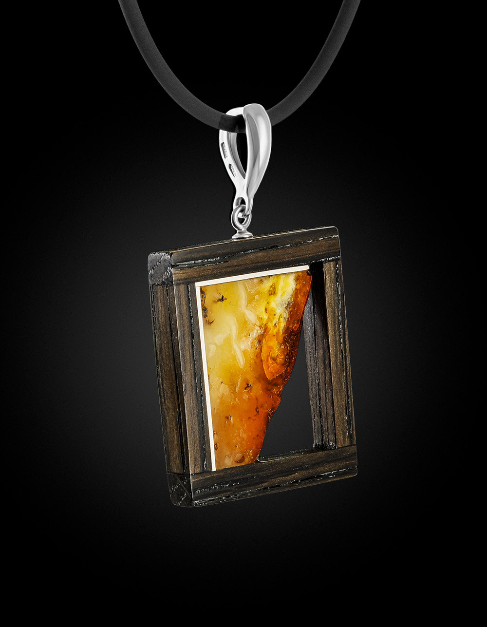 Необычная подвеска из натурального янтаря и дерева «Индонезия»