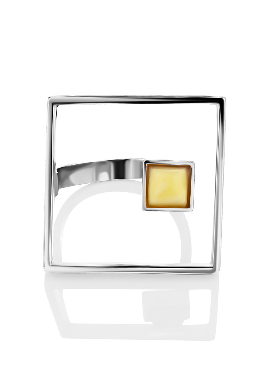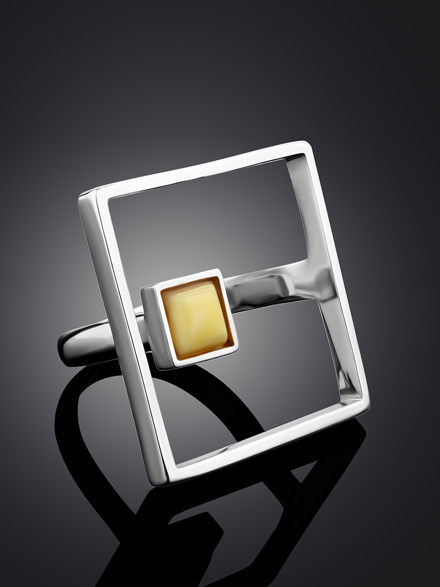 Необычное кольцо «Гравитация» с натуральным янтарём медового цвета