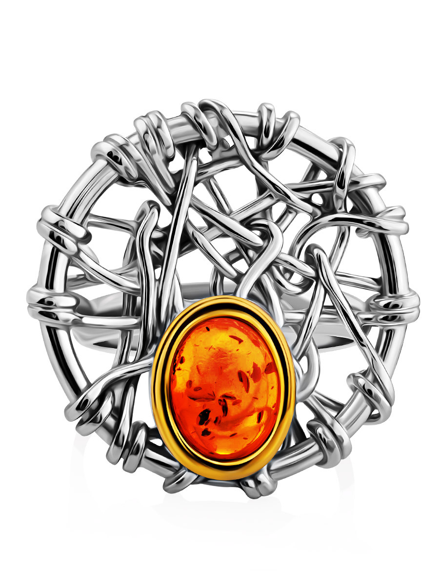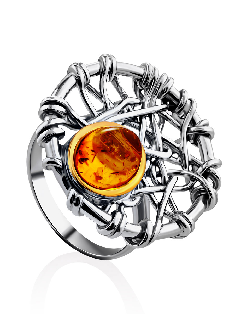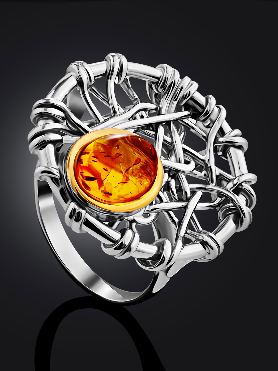 Необычное кольцо из натурального янтаря «Гнездо»