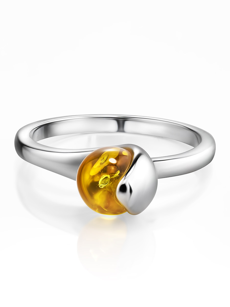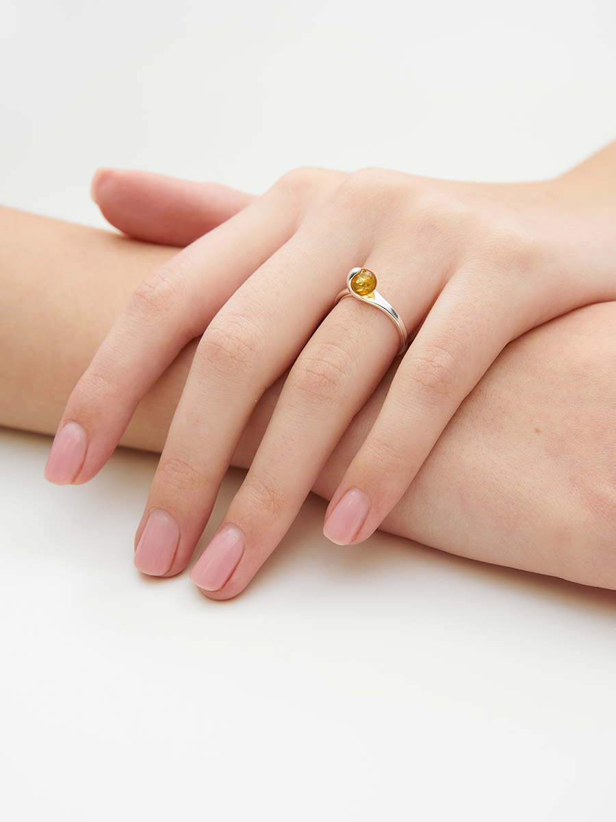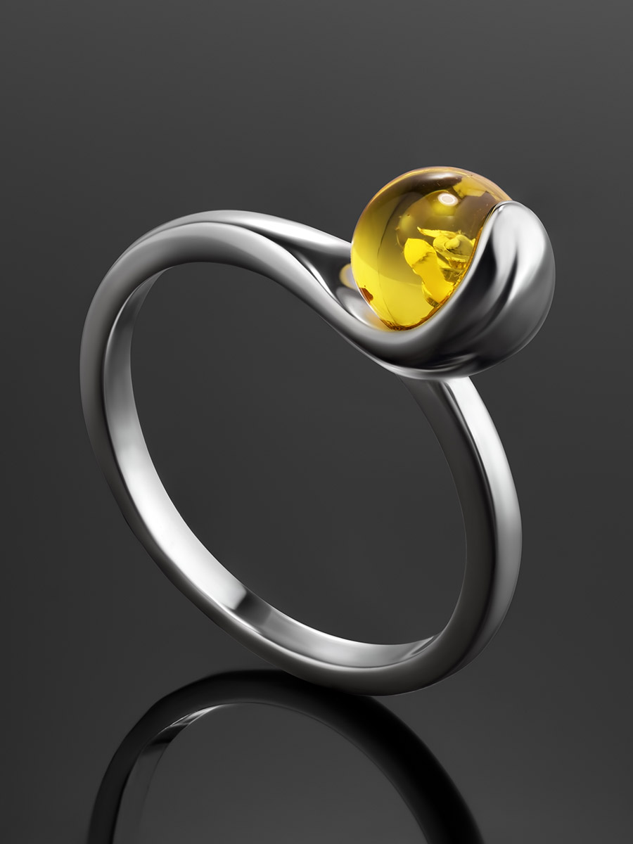 Необычное кольцо с лимонным янтарём «Лея»