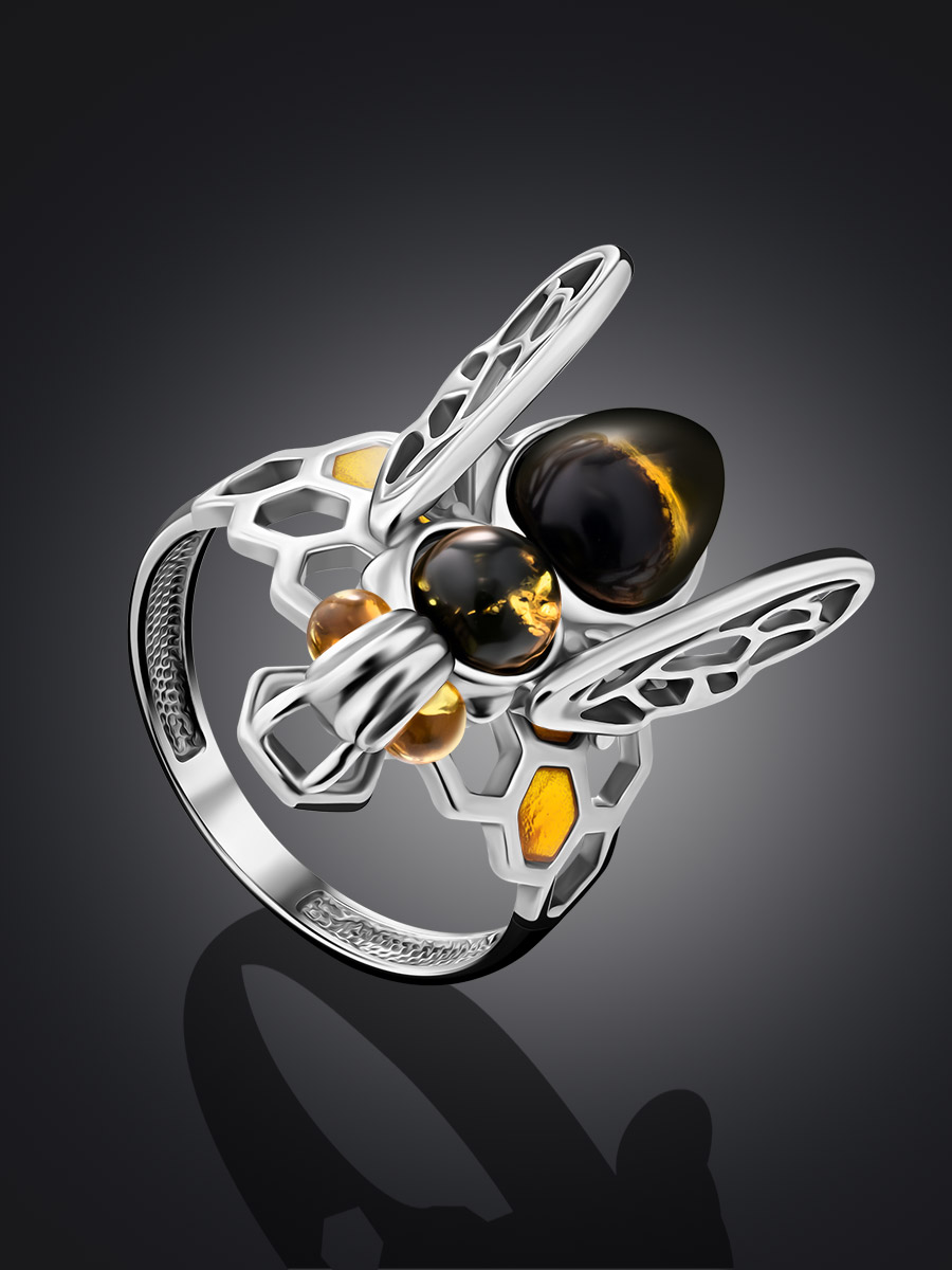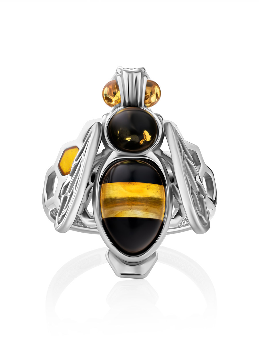 Необычное кольцо «Винни Пух» с натуральным янтарём