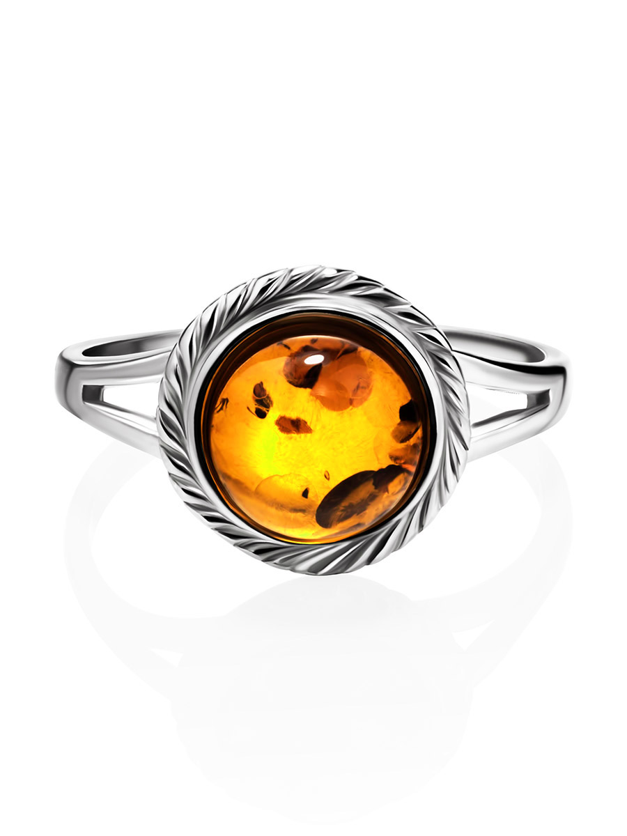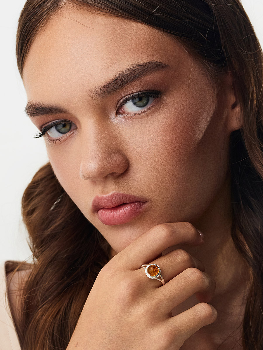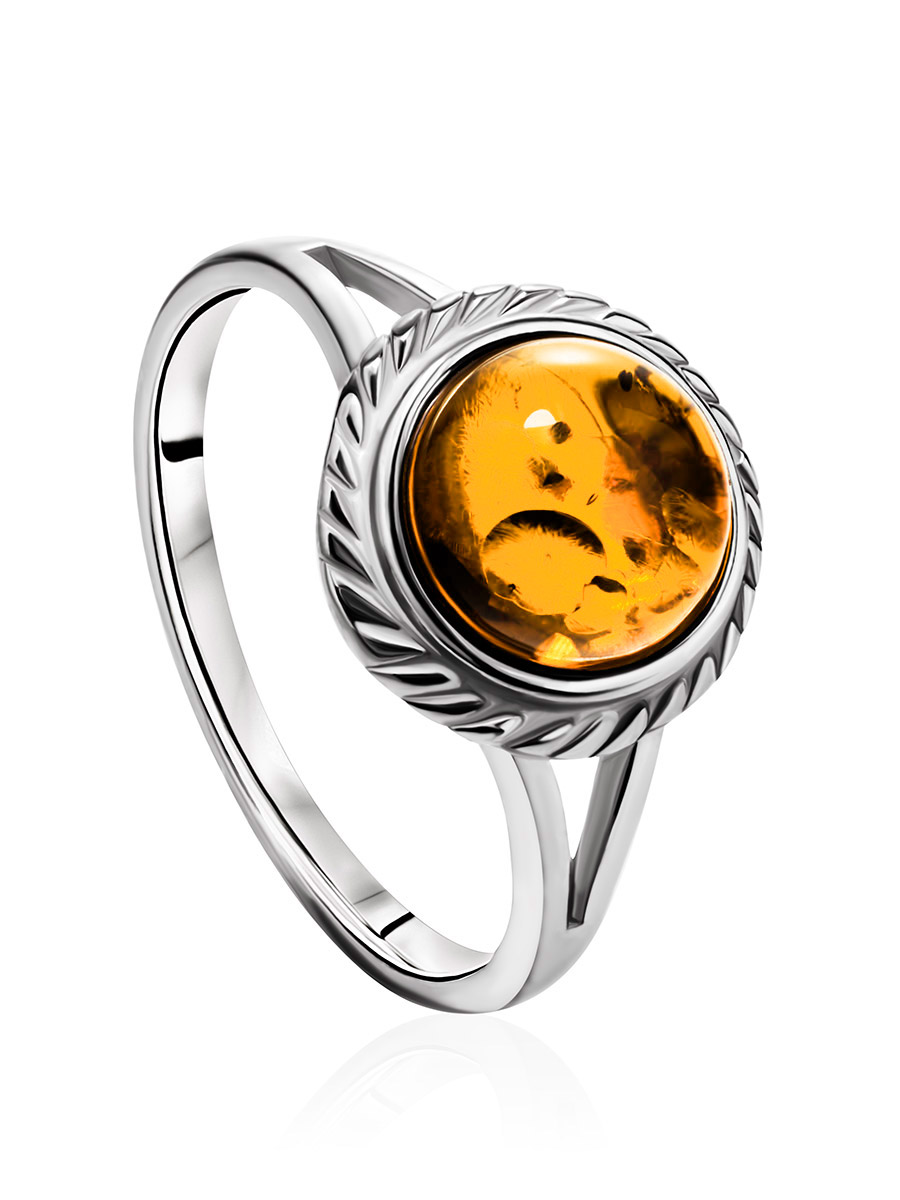 Нежное и изящное кольцо из серебра 925 пробы с натуральным коньячным янтарём — универсальное украшение, которое идеально подойдет для любого дневного образа. Тонкое и лёгкое, оно не будет мешать вам в повседневных делах, но будет озарять ваш день солнечным сиянием. _x000D_