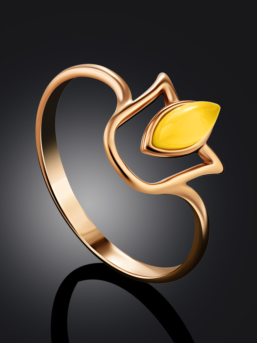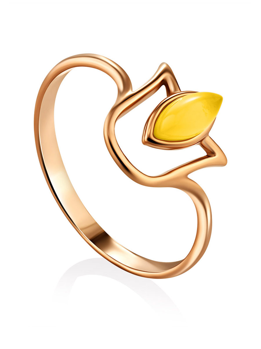 Нежное кольцо с ярко-медовым янтарём «Тюльпан»