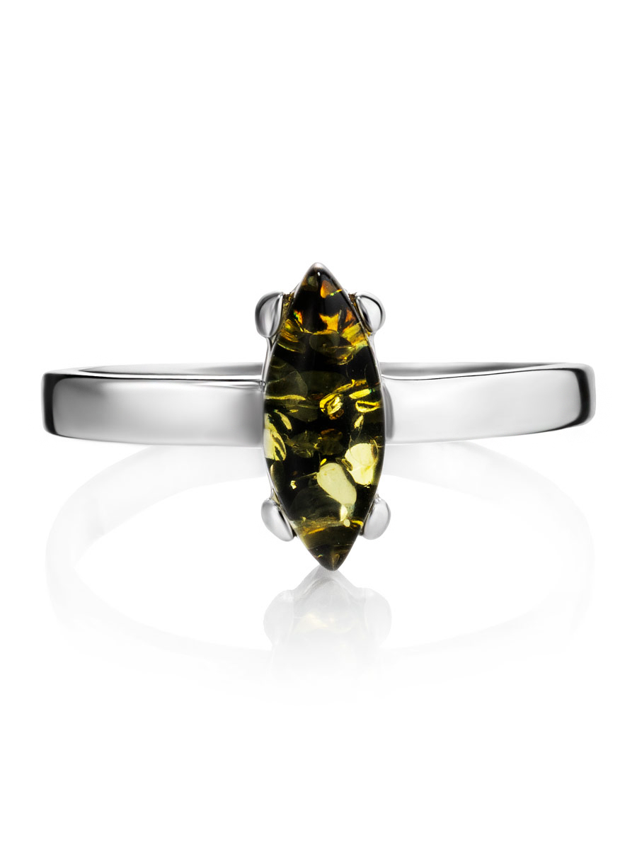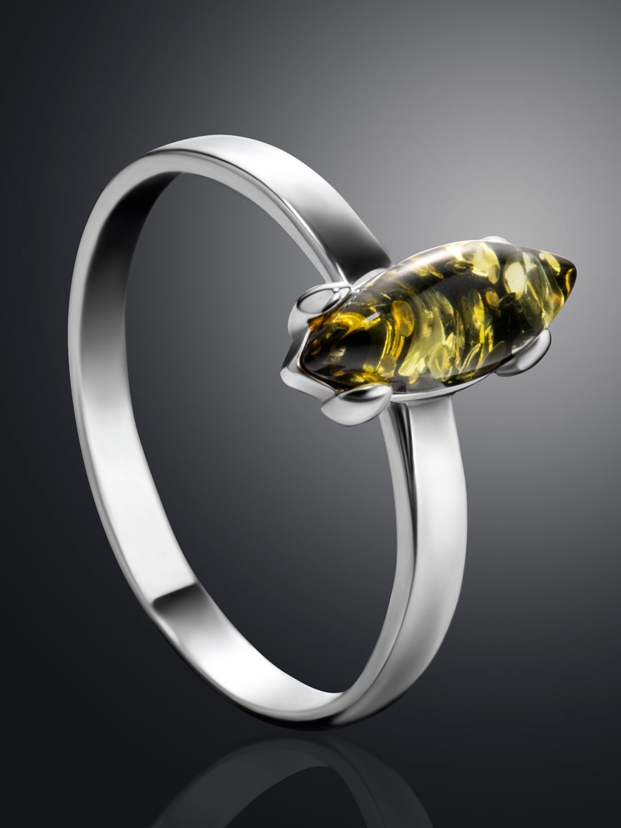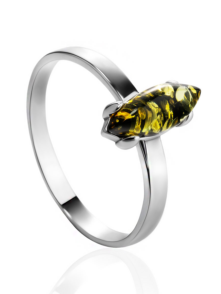 Нежное лёгкое кольцо из янтаря зелёного цвета «Суприм»