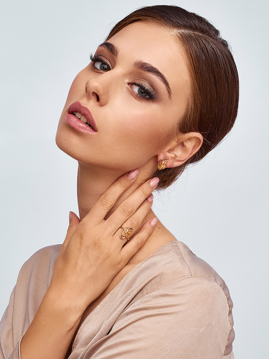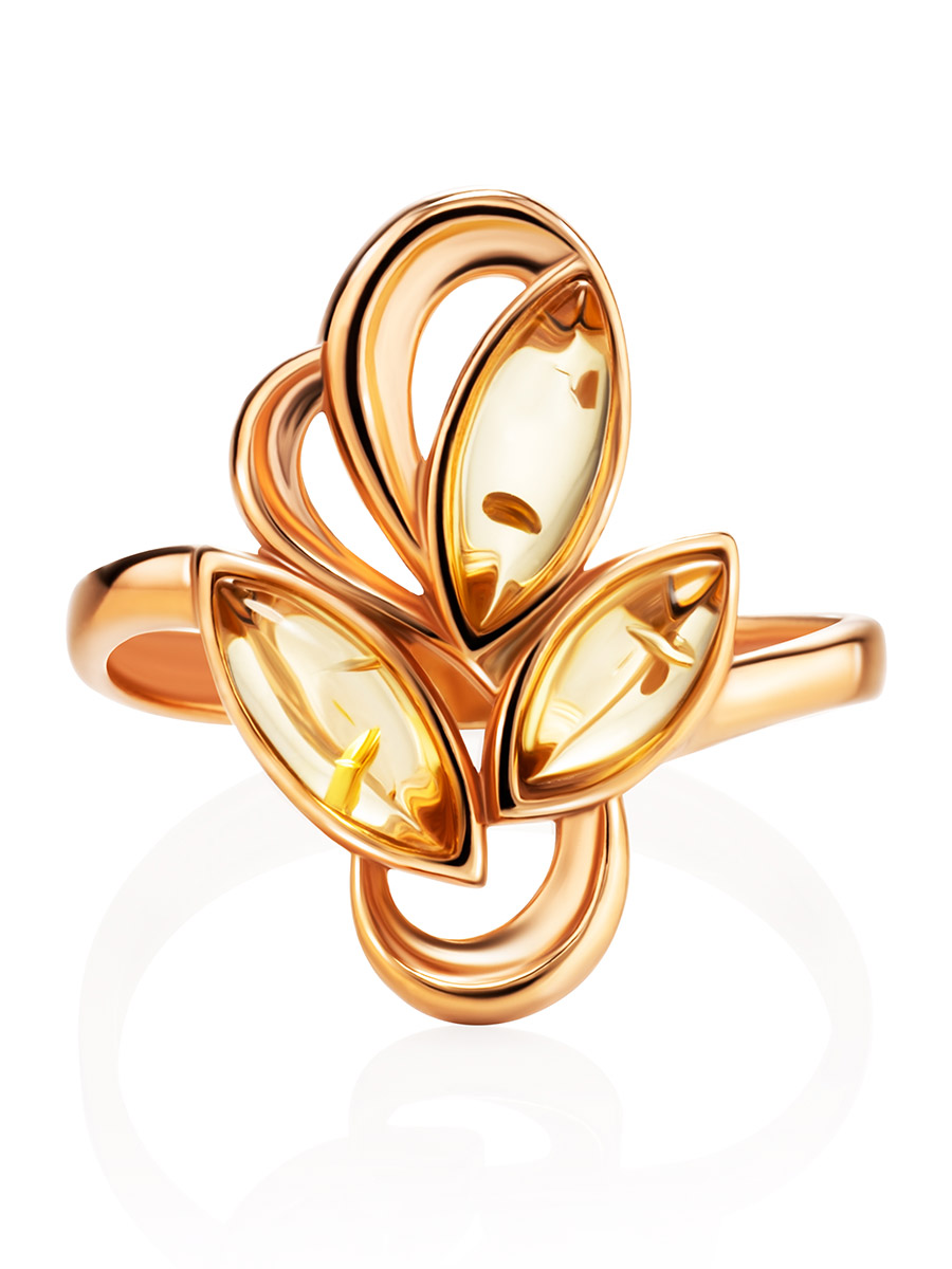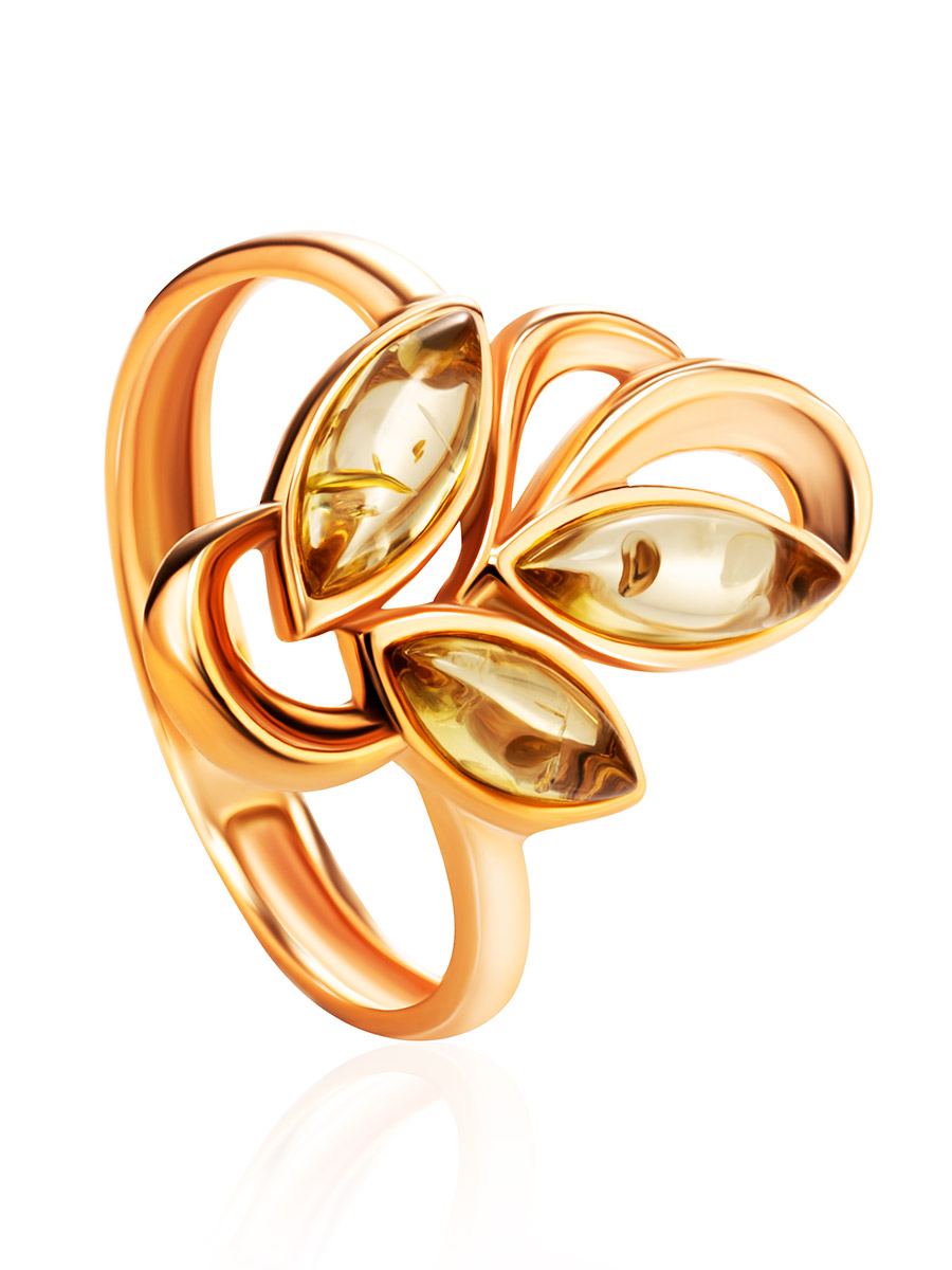 Нежное позолоченное кольцо с лимонным янтарём «Райская птица»