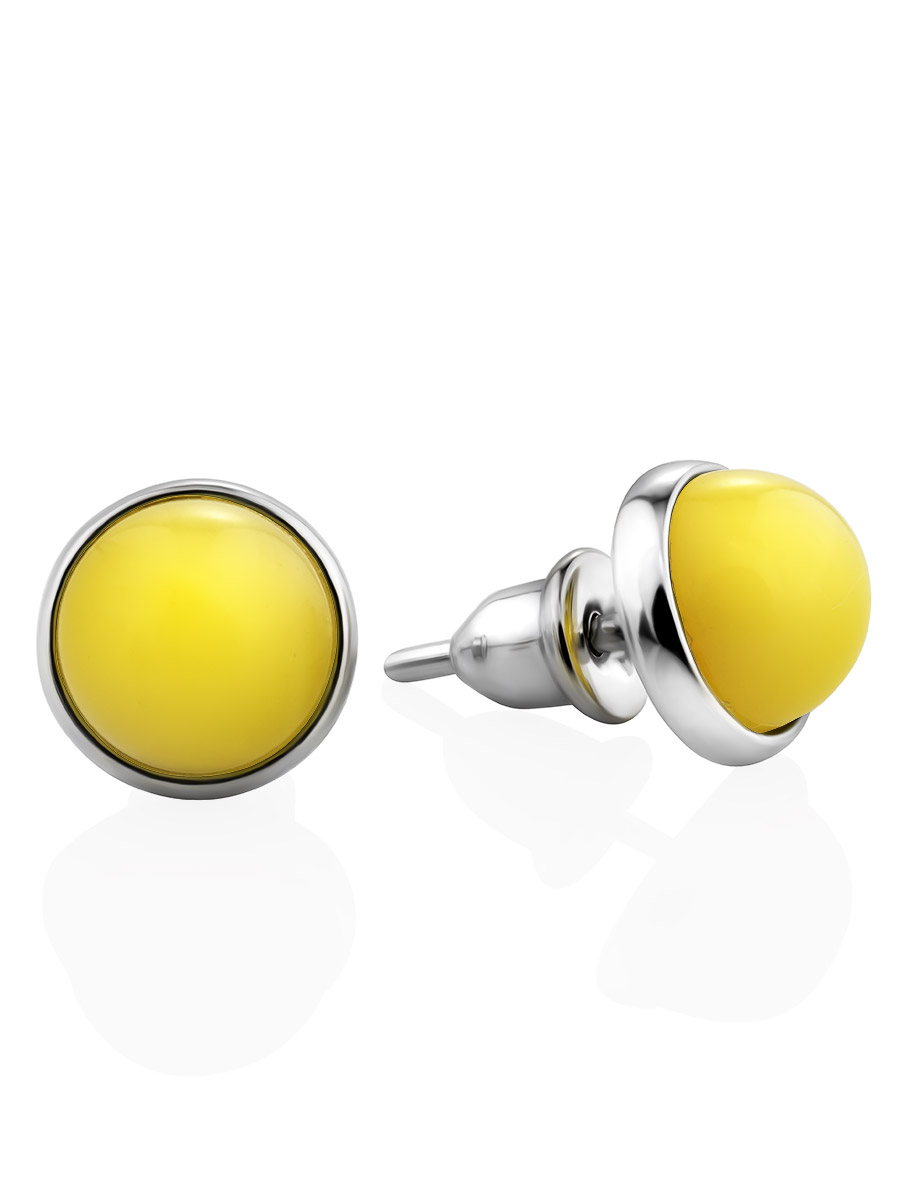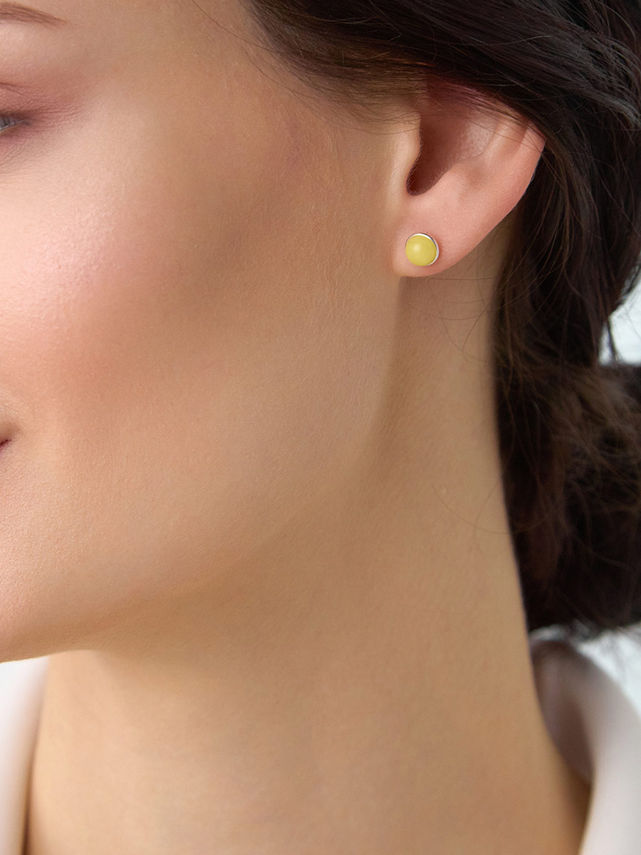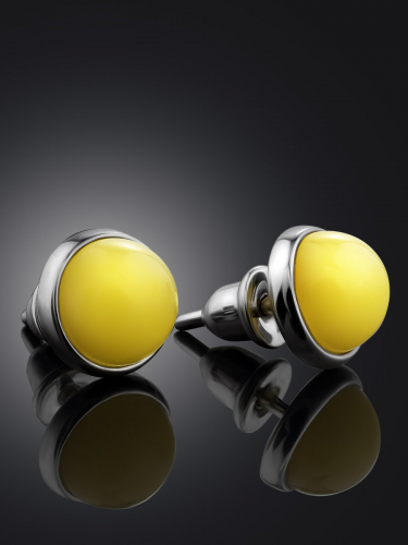 Нежные серьги-пусеты со вставками из натурального медового янтаря «Ягодка»