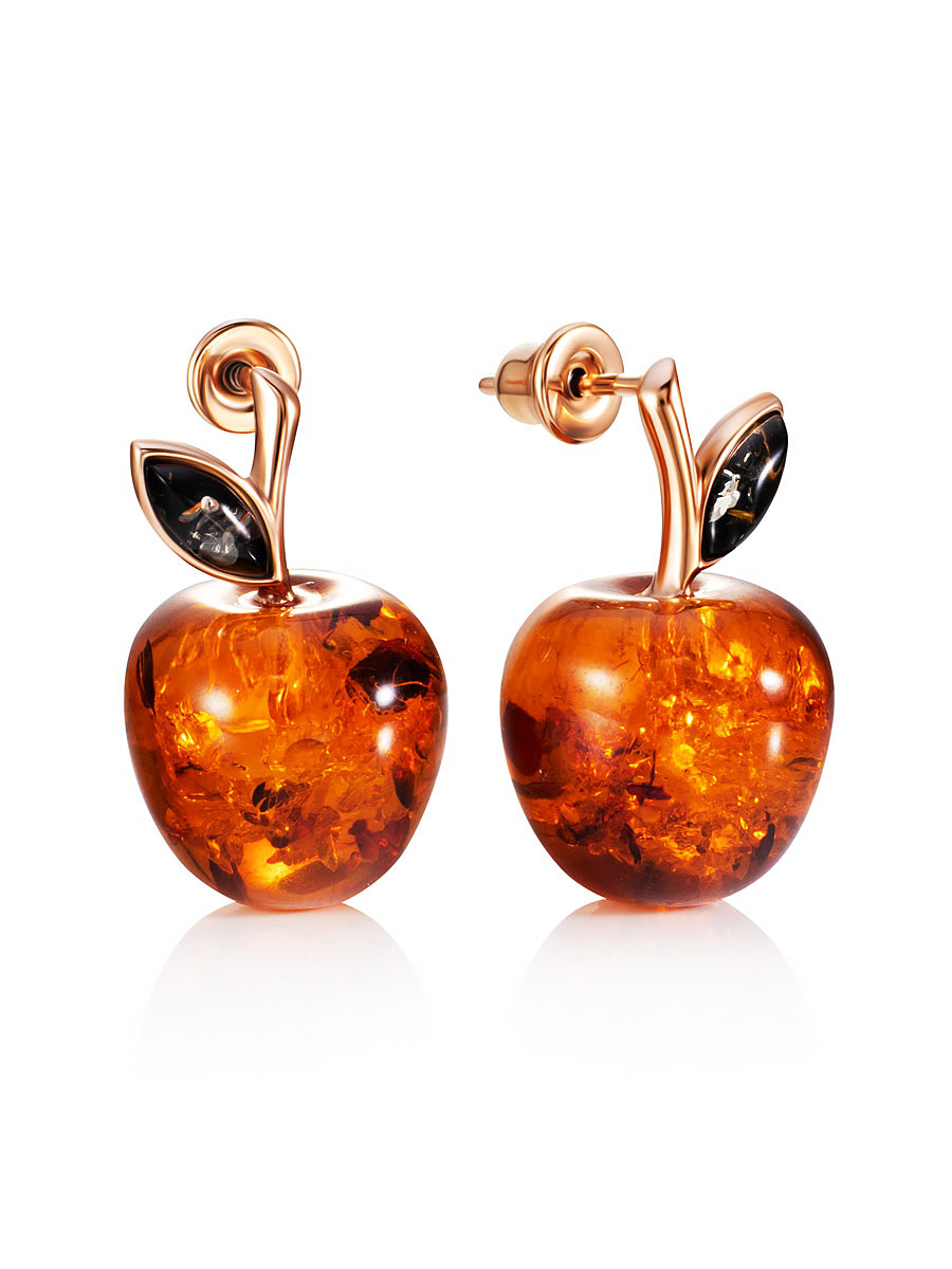 Очаровательные серьги-гвоздики из коньячного янтаря «Яблочко»