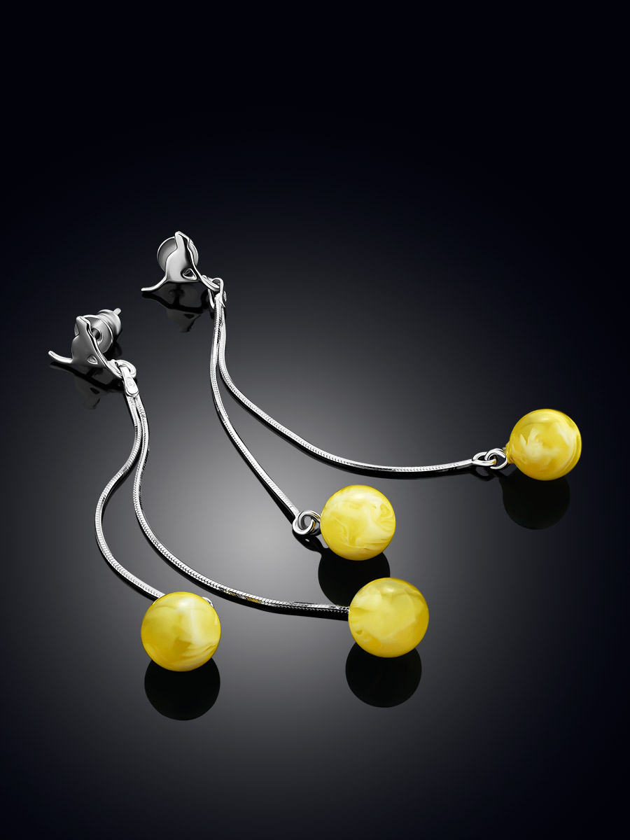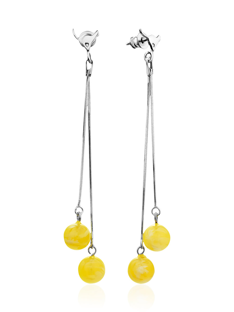 Очаровательные удлинённые серьги-гвоздики из янтаря медового цвета «Кошечки»