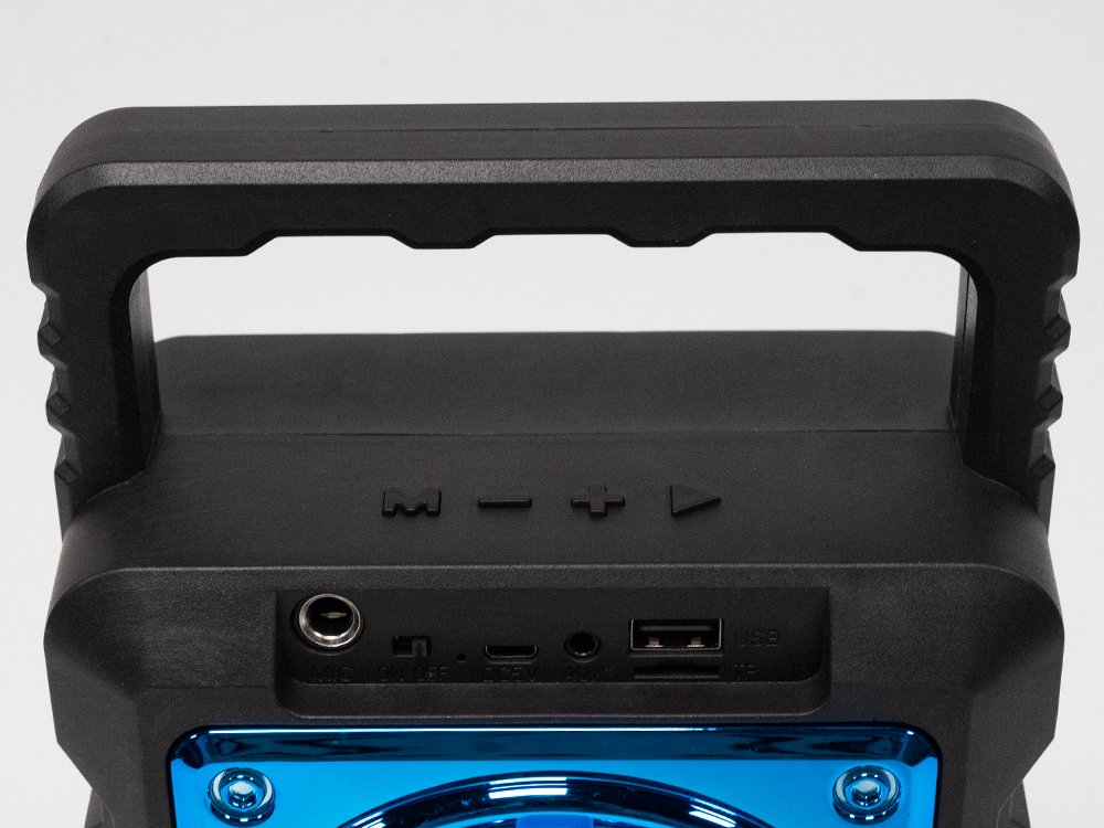 подсветкой, регулятором громкости, разъемами USB, MIC, AUX, MicroSD, ёмкостью