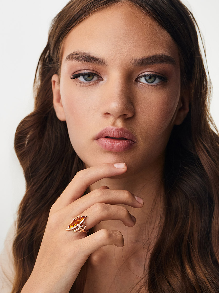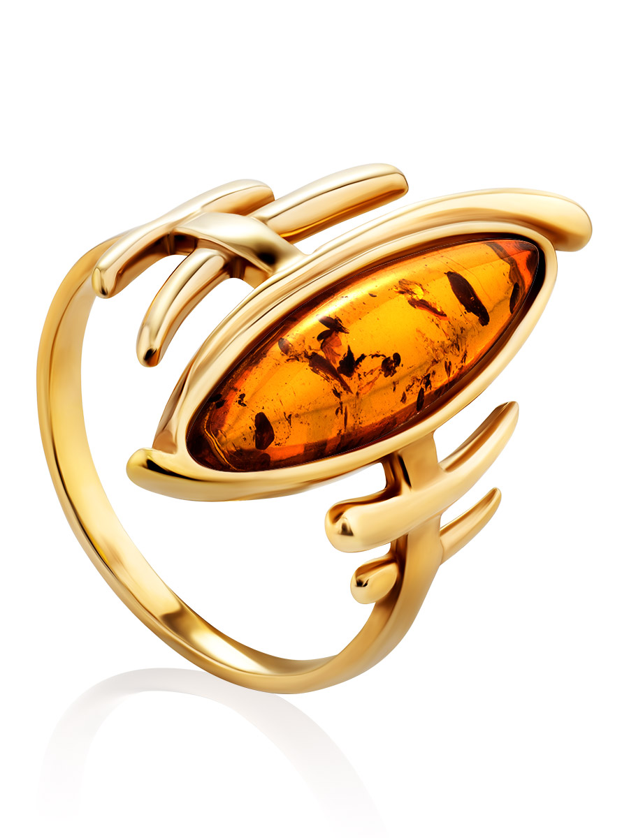 Оригинальное кольцо «Фудзияма» из коньячного янтаря