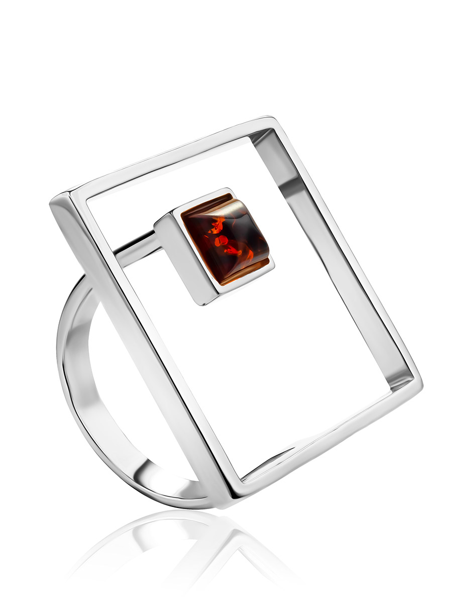 Оригинальное кольцо «Гравитация» с вишнёвым янтарём