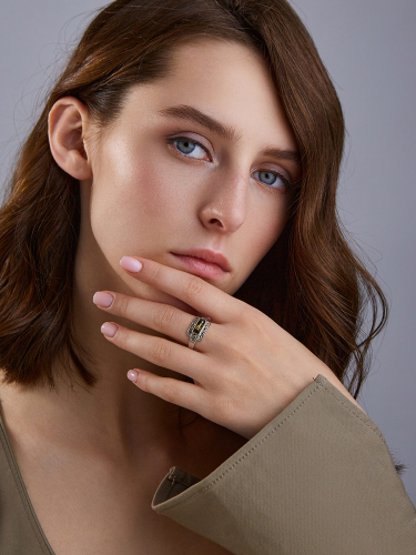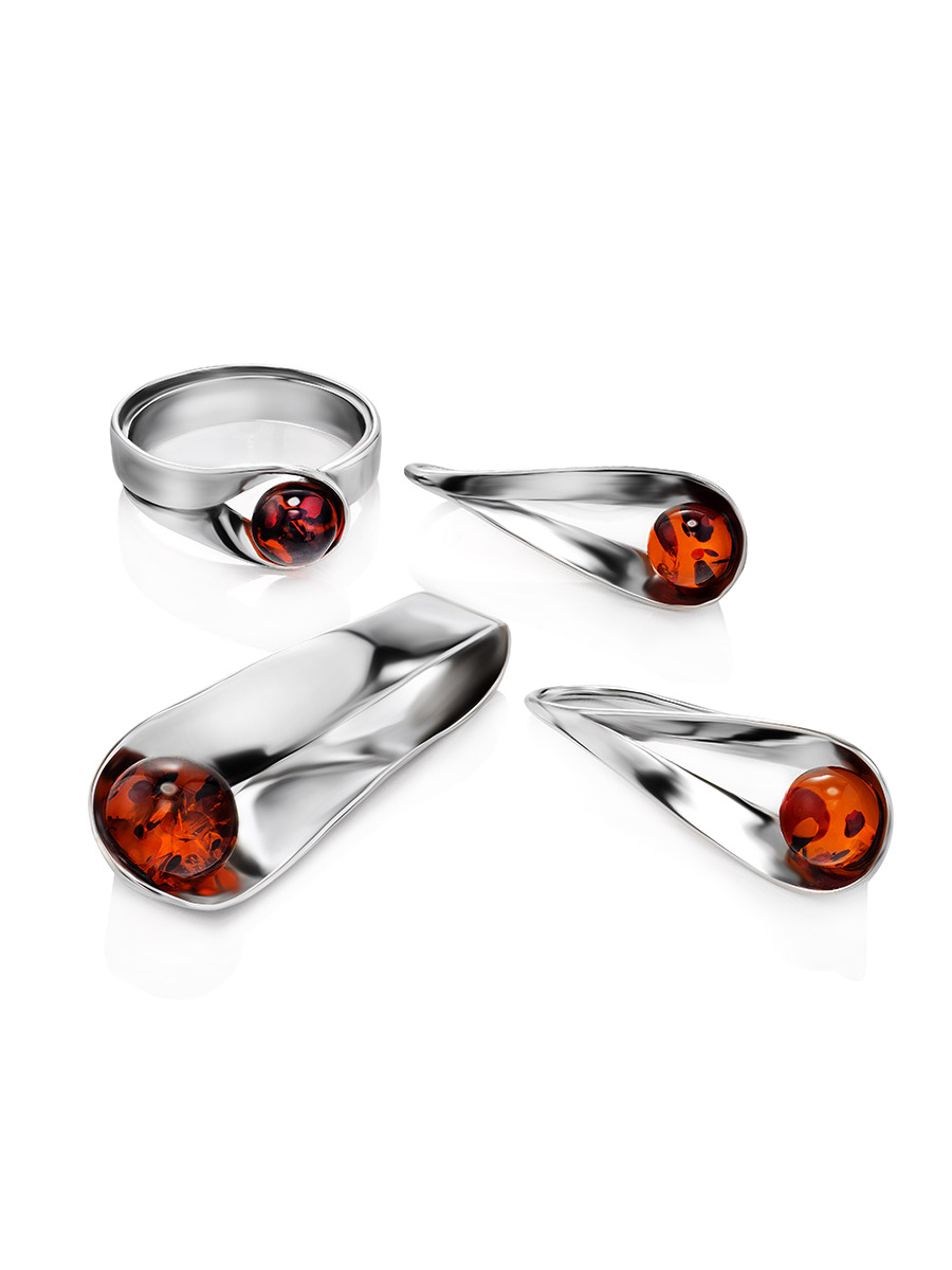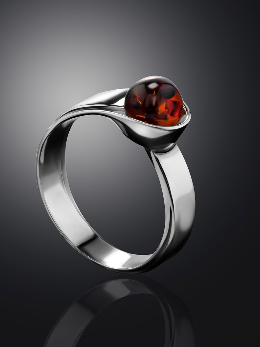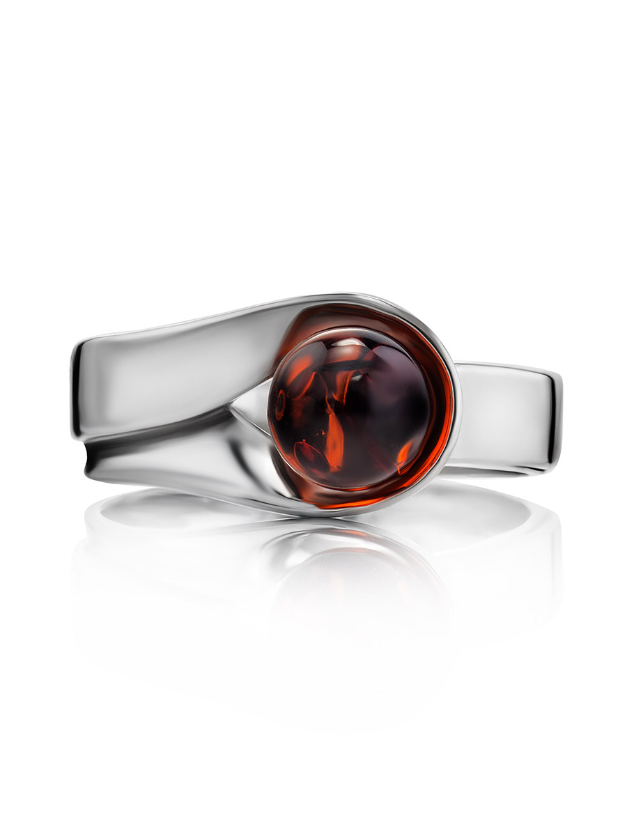 Оригинальное кольцо «Лея» из коньячного янтаря