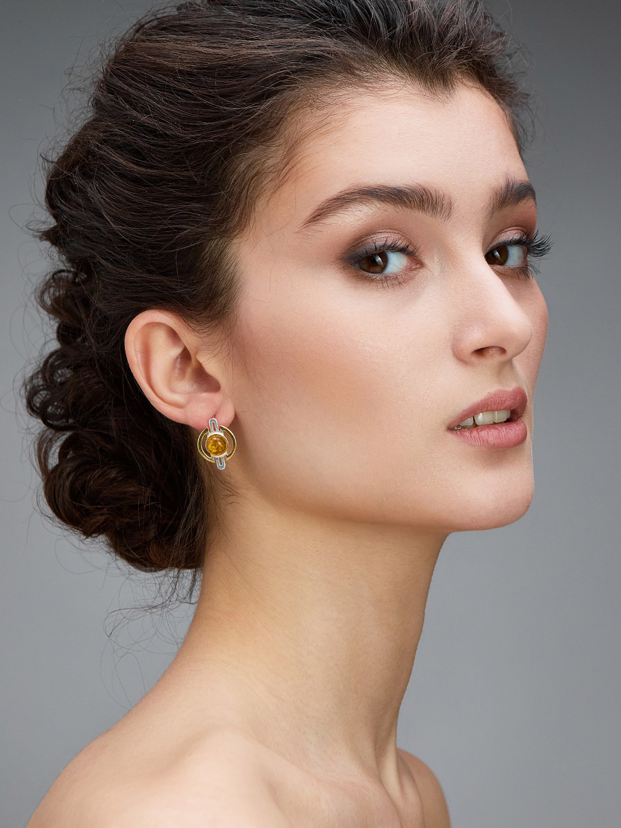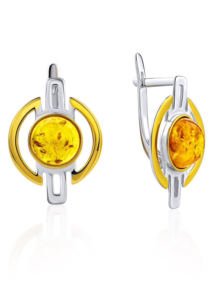 Оригинальные серьги «Люмьер» из золотистого янтаря