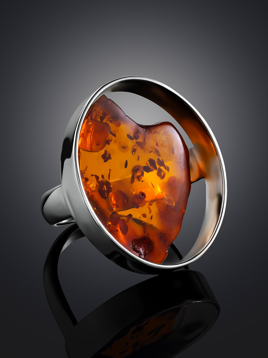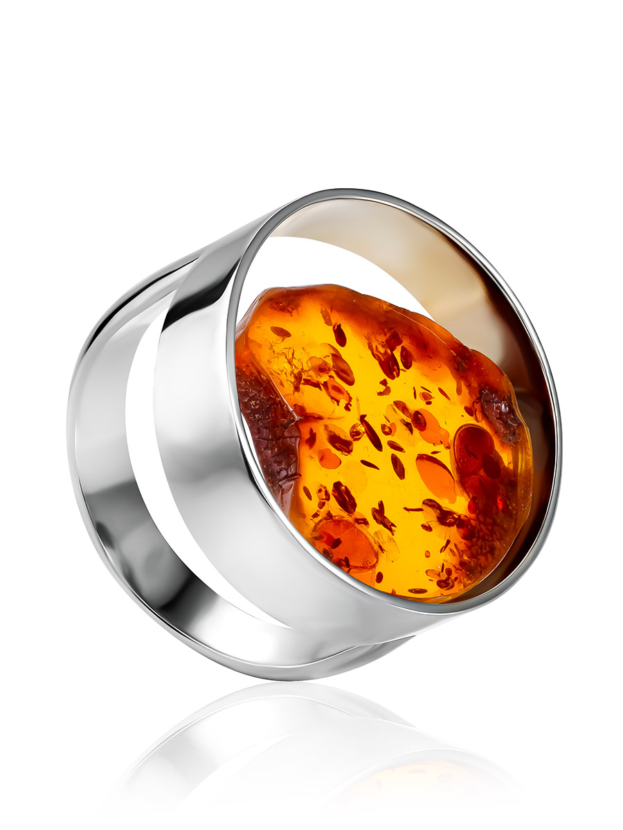 Овальное кольцо «Самум» из натурального янтаря коньячного цвета