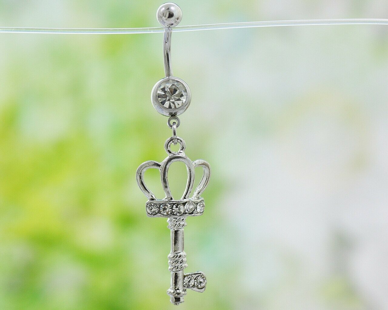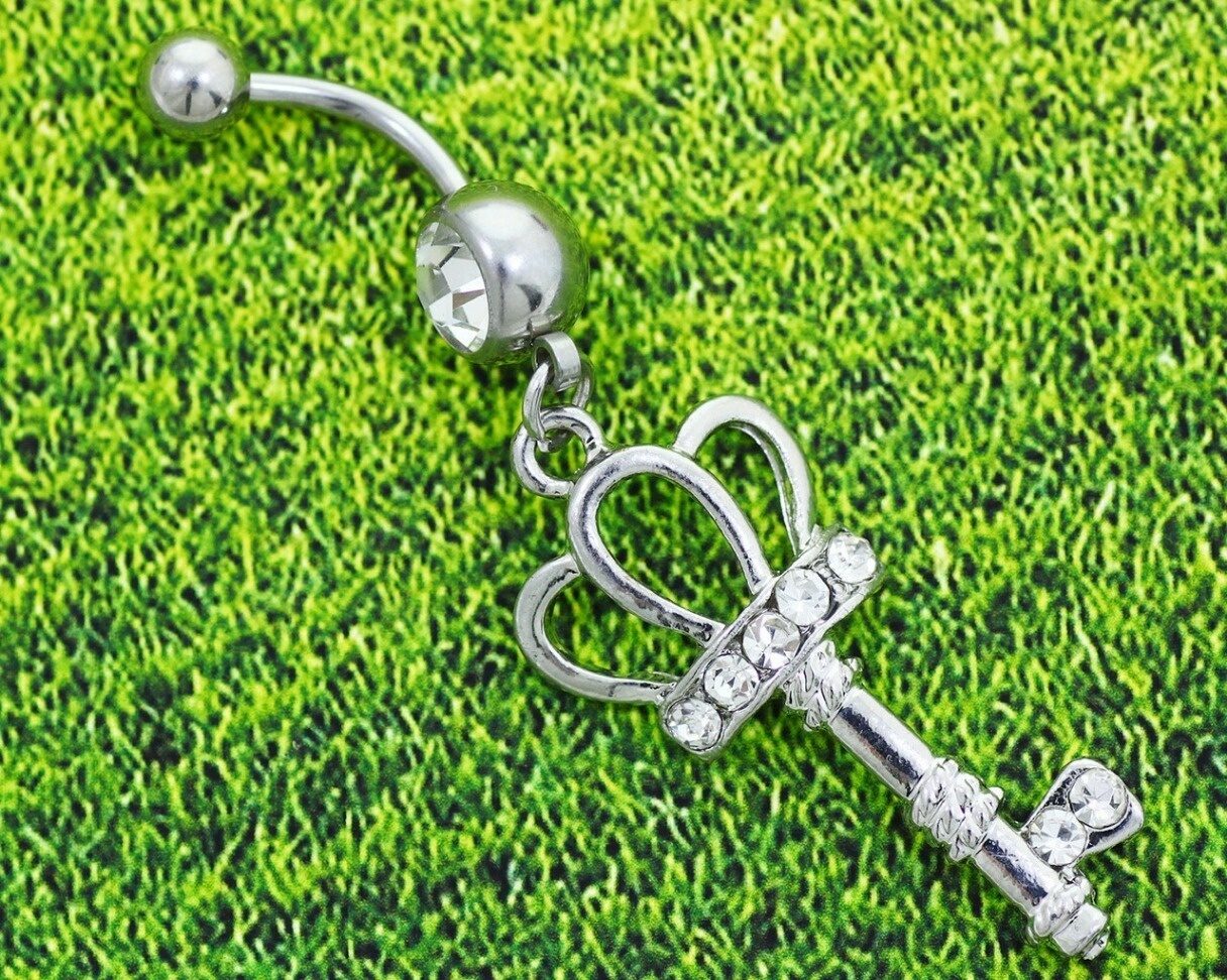 Красивый пирсинг в пупок со стразами