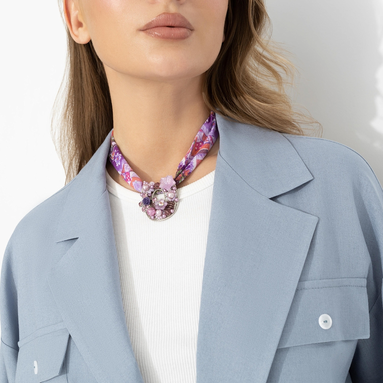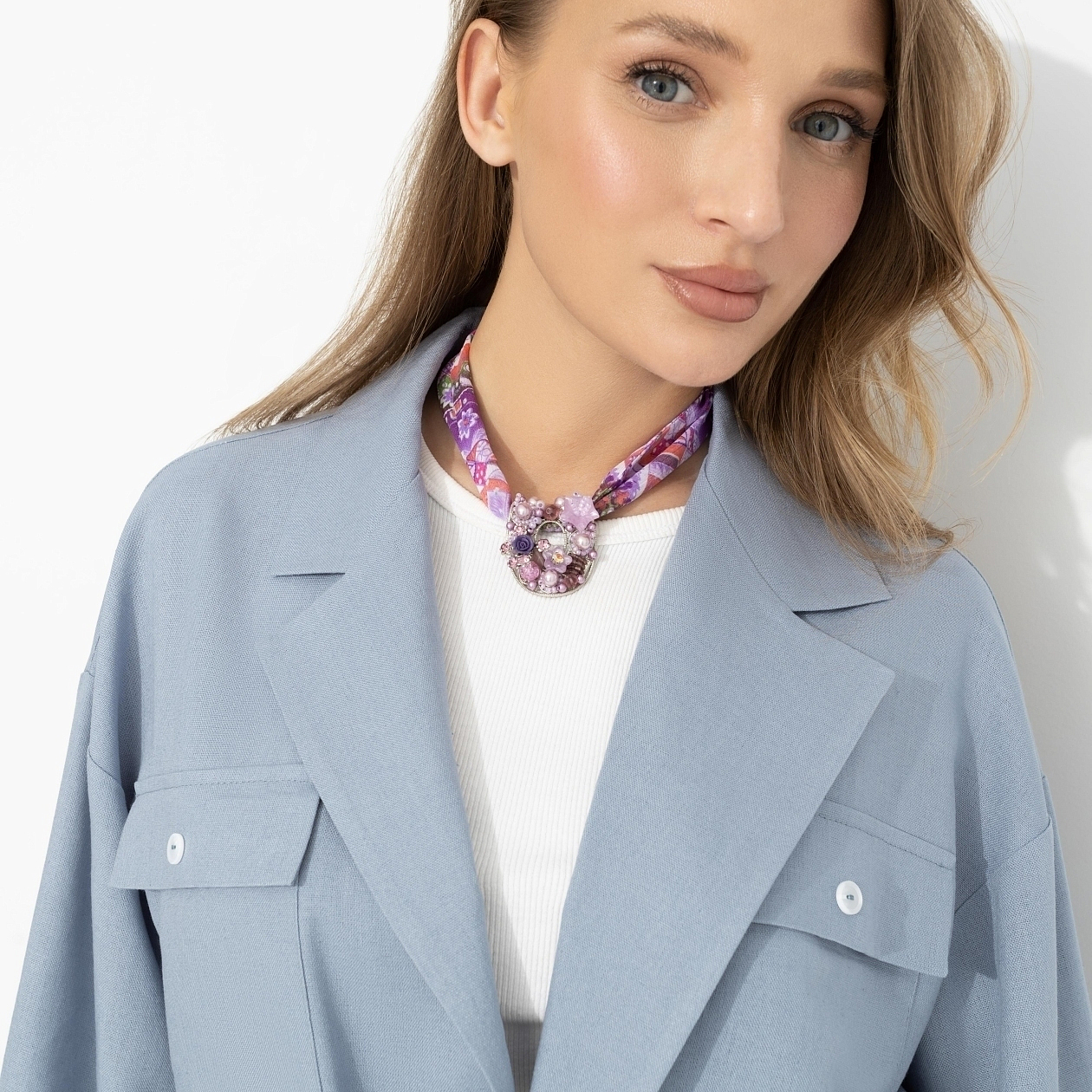 Не просто украшение − это маленькая вспышка настроения. Как будто внутри тебя есть что-то яркое, живое, чуть дерзкое − и ты решила это больше не прятать. Не громко, не напоказ, но так, что хочется рассматривать. Подвес собран как маленькая композиция: плотное переплетение бисера и бусин даёт объём и глубину цвета, а текстильная основа мягко обнимает шею и не спорит с кожей. Центральный элемент работает как фокус − он ловит свет и собирает взгляд. Лучше всего раскрывается в простых образах, где можно дать этой детали звучать в полный голос. Используйте как ожерелье или как подвес на сумку.