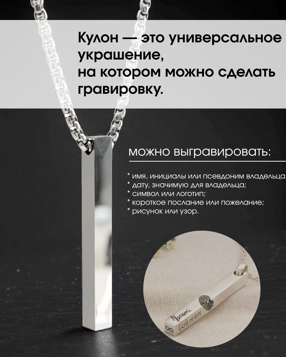 Ошибка при загрузке данных! (Подвеска "столбик" — это универсальное украшение, на котором можно сделать гравировку различными способами.