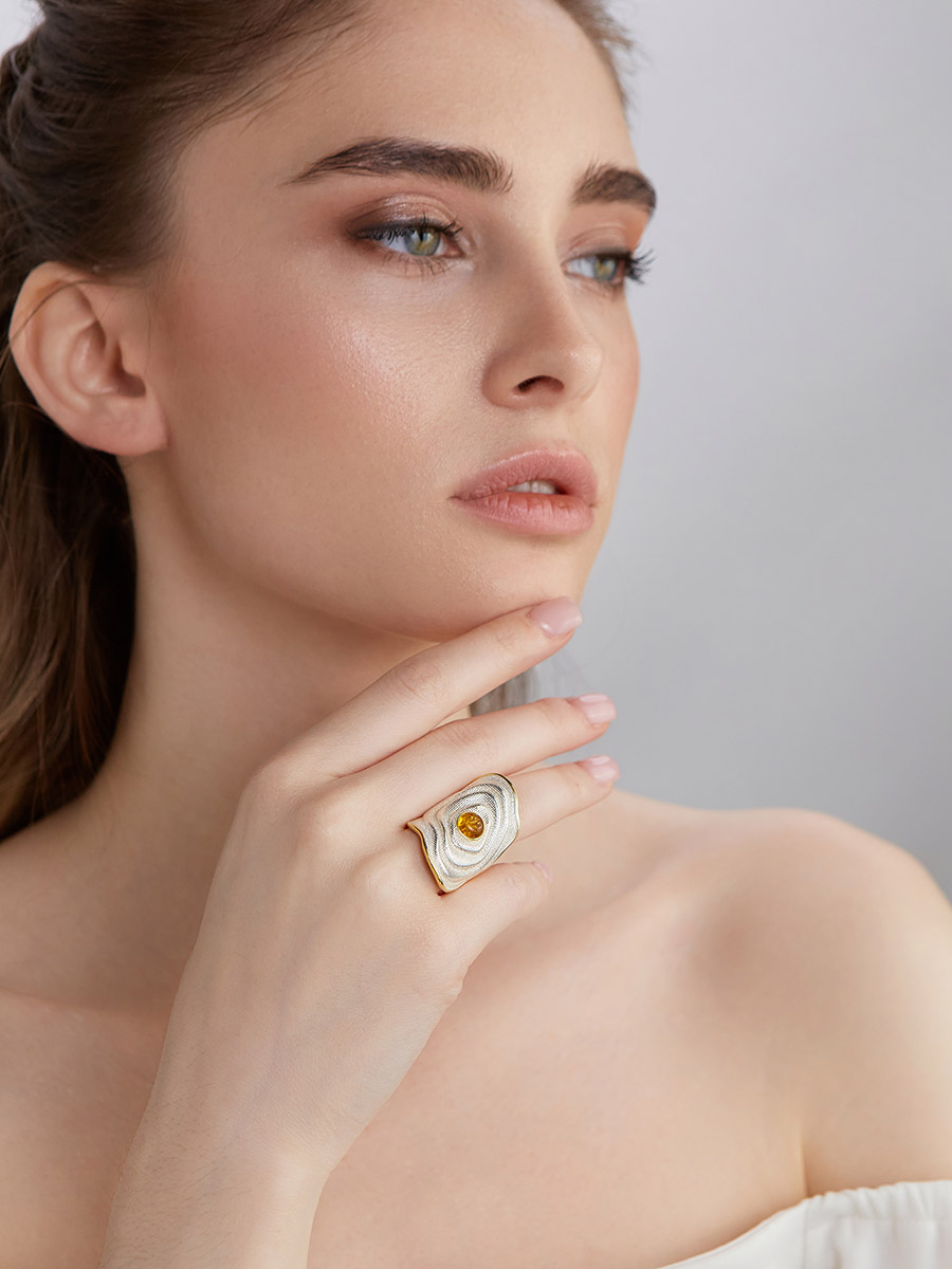 Потрясающее роскошное кольцо «Сальвадор» с натуральным янтарём