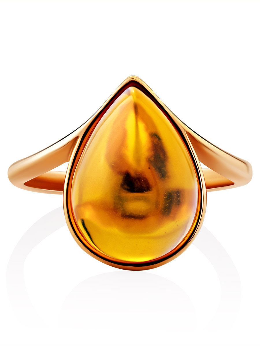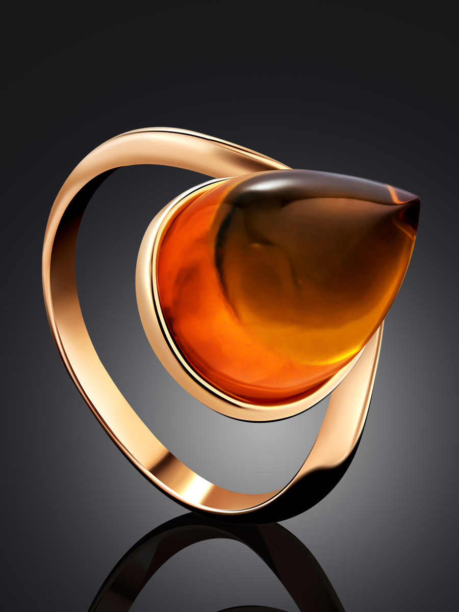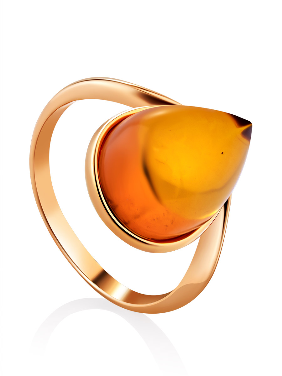 Позолоченное кольцо «Фиори» с ярким коньячным янтарём