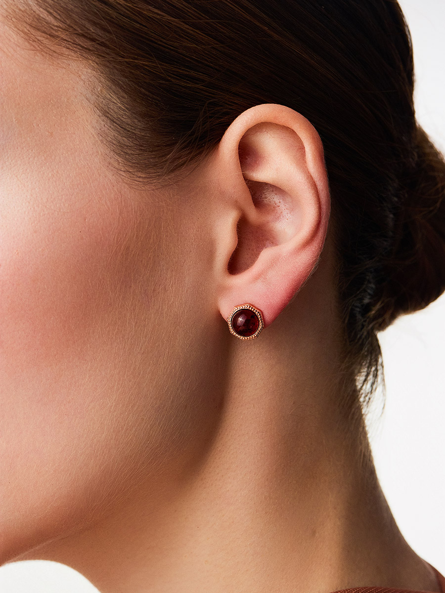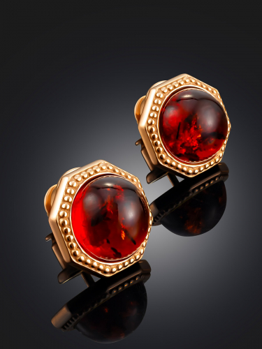 Позолоченные серьги-гвоздики «Шахерезада» с коньячным янтарём