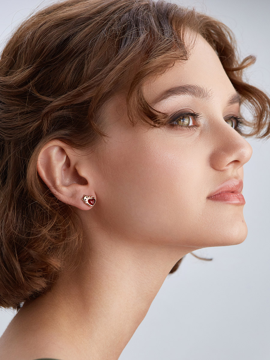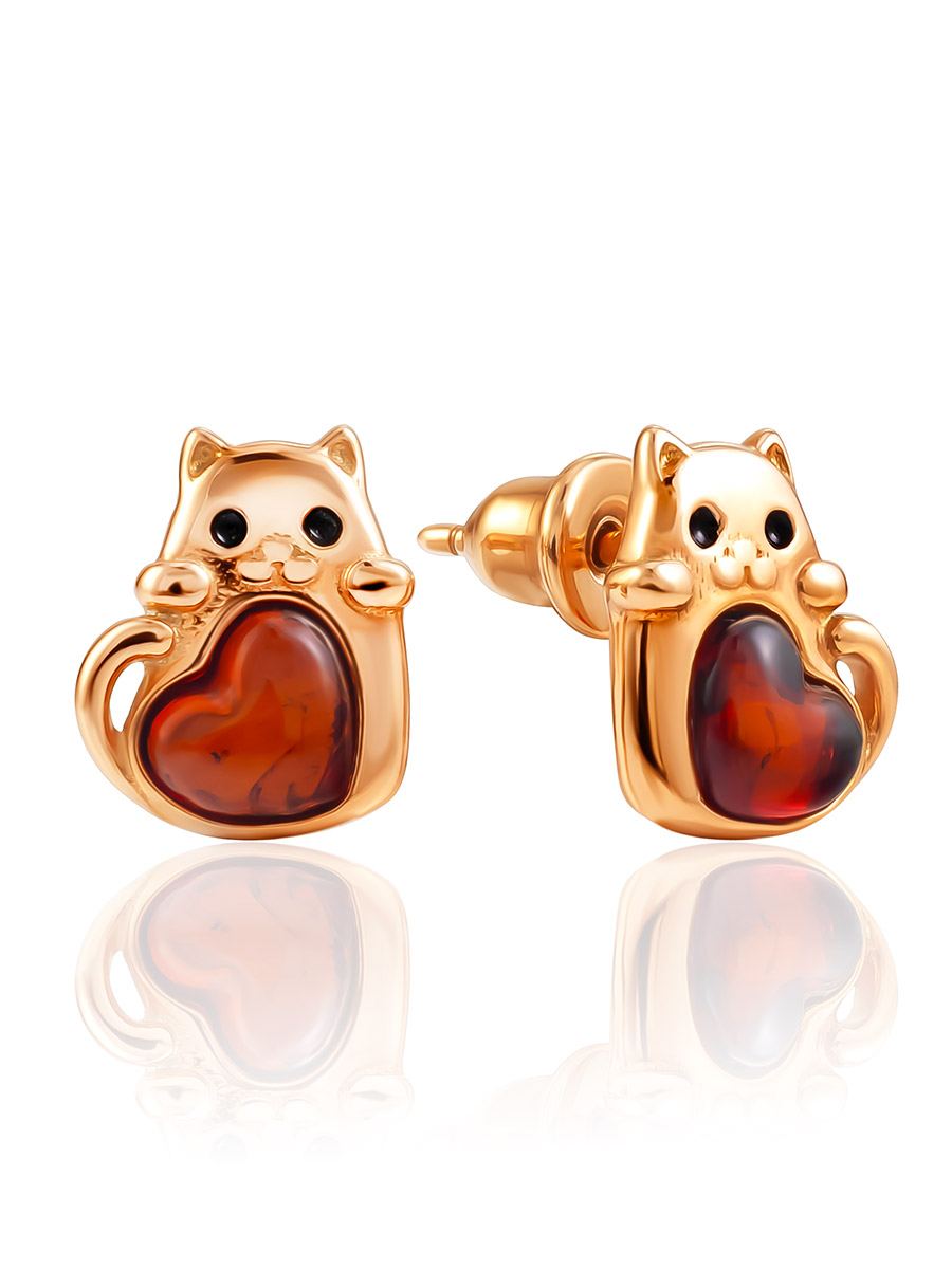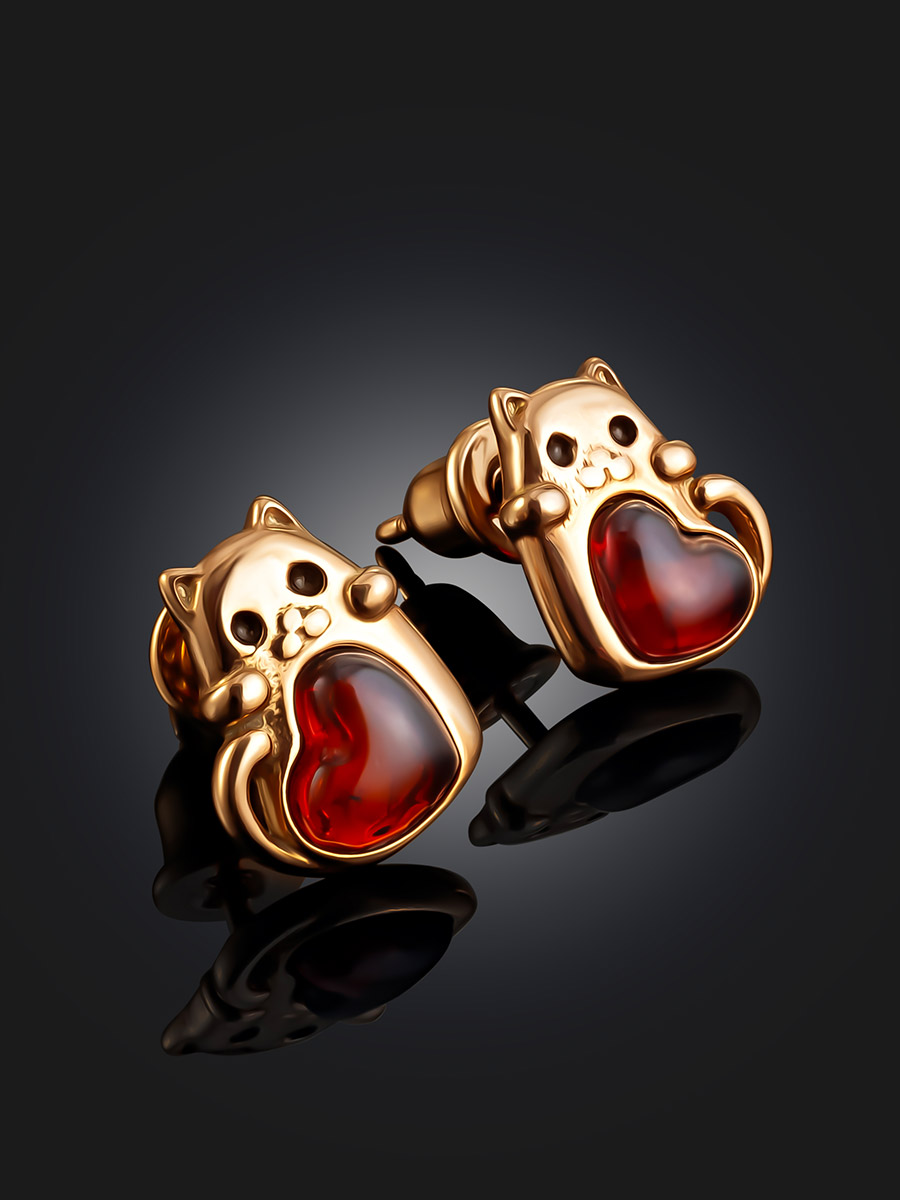 Позолоченные серьги-пусеты «Лямурр» с вишнёвым янтарём
