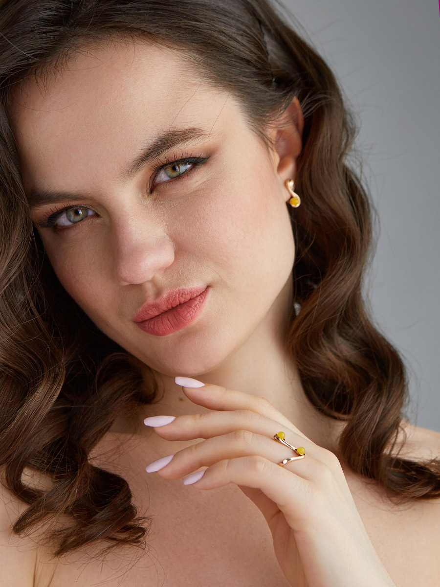Позолоченные серьги с янтарём медового цвета «Лея» от ifamore™