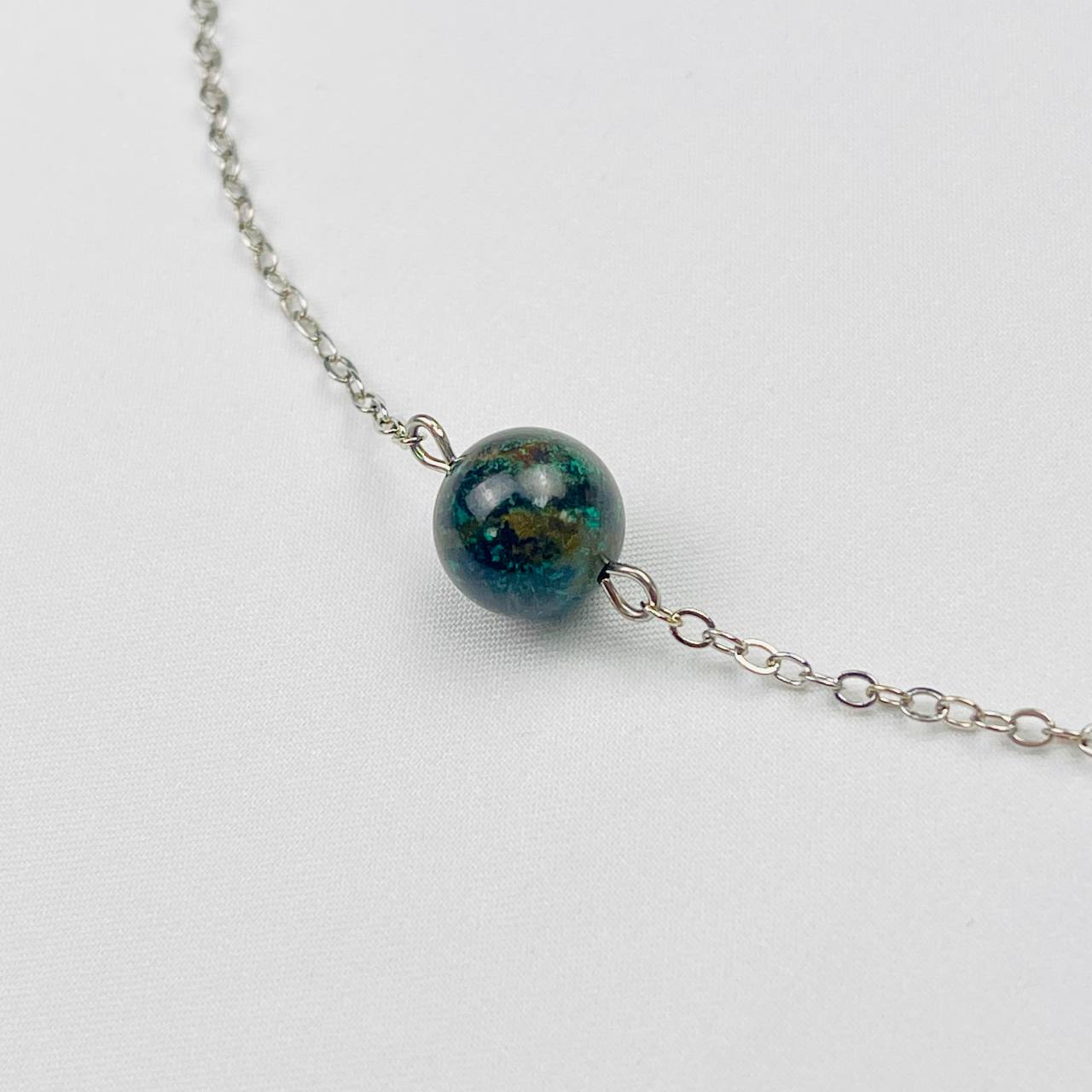 Цвет камня: Миксовый Месторождени..показатье: США Камень: Хризоколла Покрытие: Сталь (316L) Диаметр: 10 мм Поверхность: Гладкий Производитель: Радуга Самоцветов (Россия) Тип замка: Карабин с цепочкойе: США