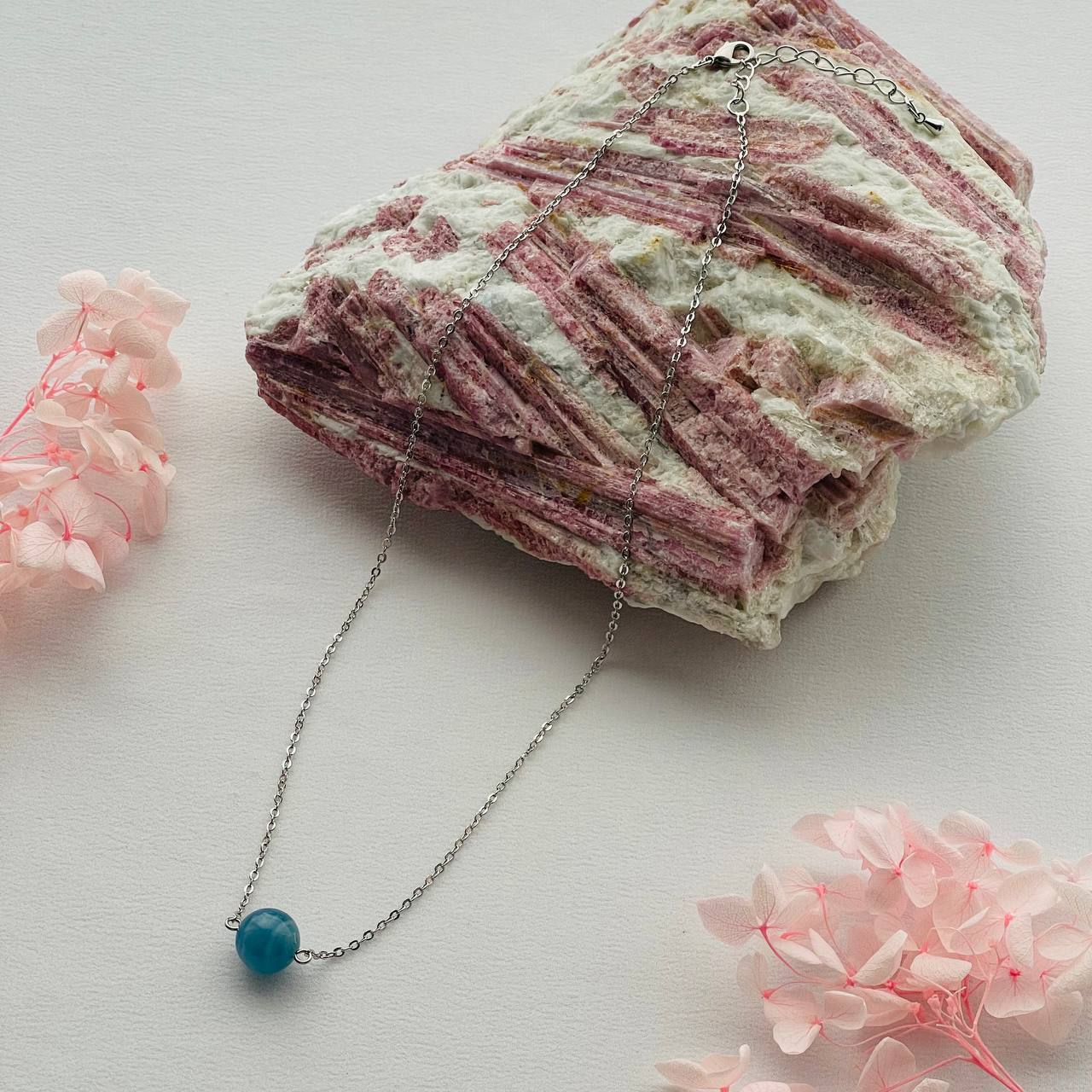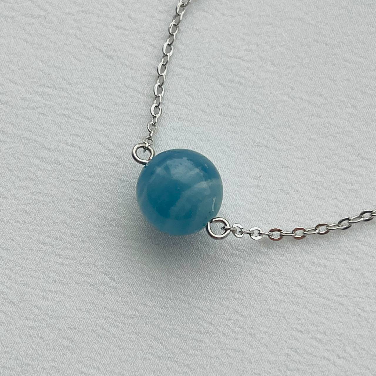Цвет камня: Голубой Камень: Кальц..показатьит Покрытие: Бижутерный сплав Диаметр: 10 мм Поверхность: Гладкий Производитель: Радуга Самоцветов (Россия) Тип замка: Карабин с цепочкойит