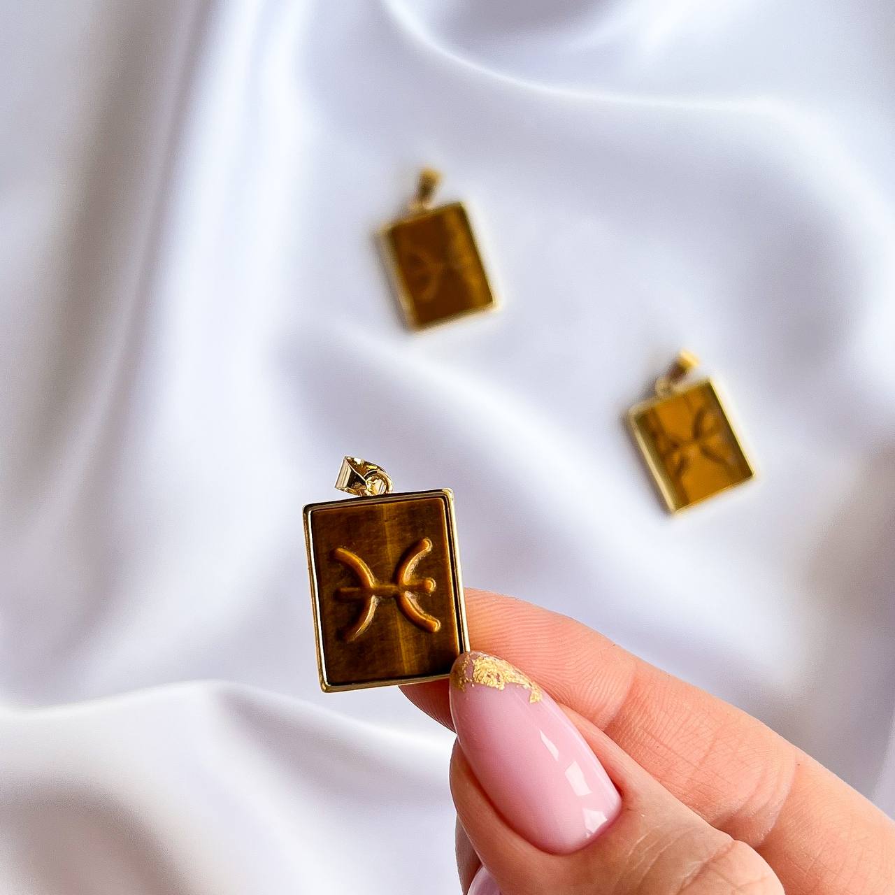 Радуга Самоцветов Кулон со знаком зодиака "Рыбы" из Тигрового глаза