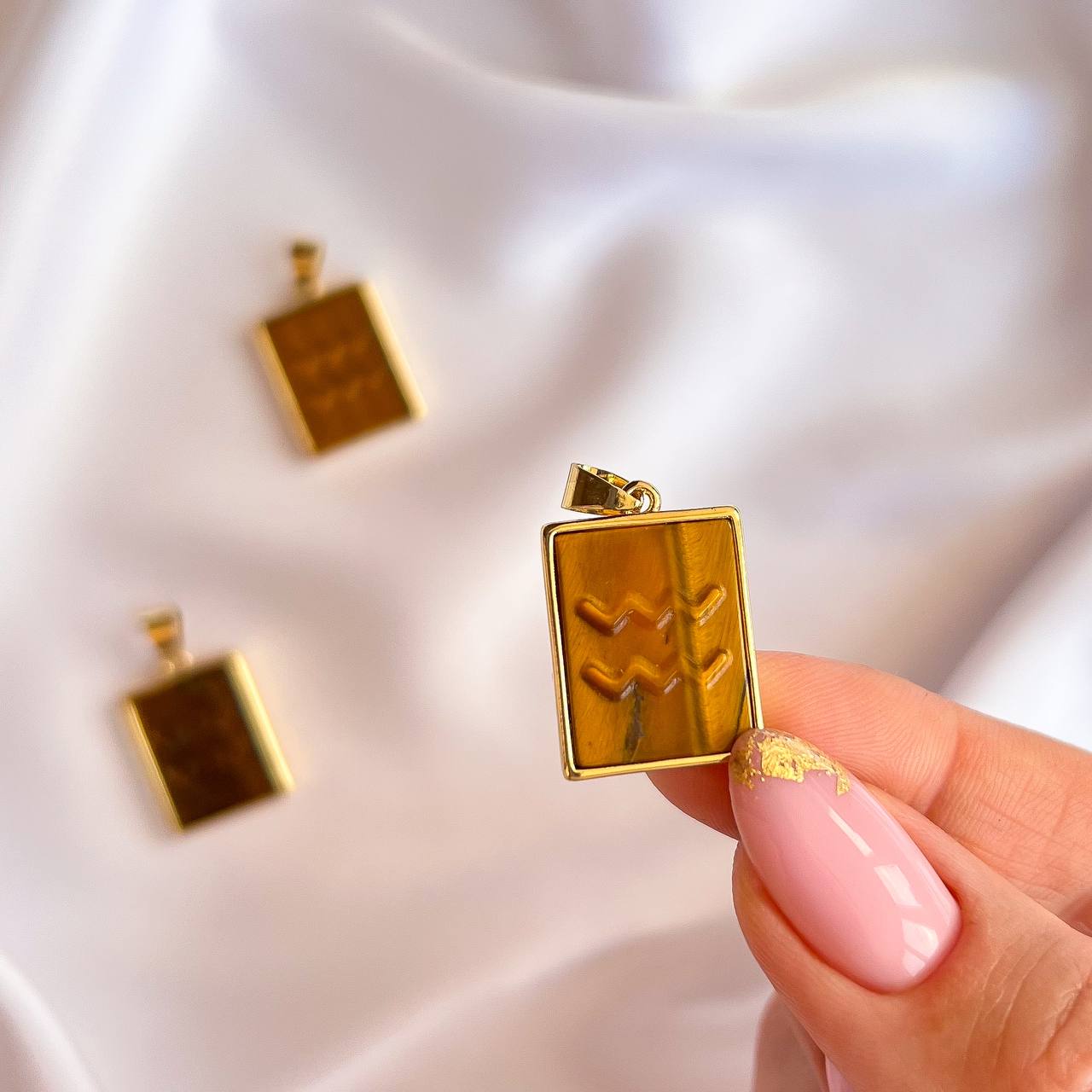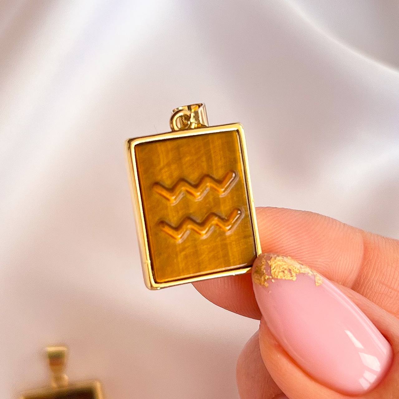 Радуга Самоцветов Кулон со знаком зодиака "Водолей" из Тигрового глаза
